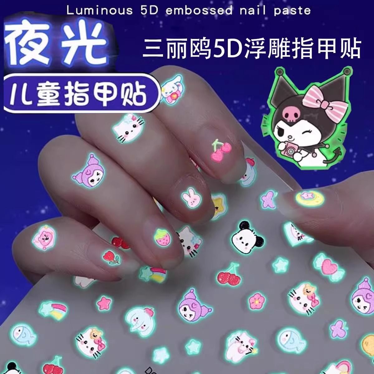 2025新款夜光指甲贴儿童女孩幼儿园宝宝美甲贴花防水持久自粘网红卡通可爱公主脚趾甲贴纹身贴手指荧光贴纸