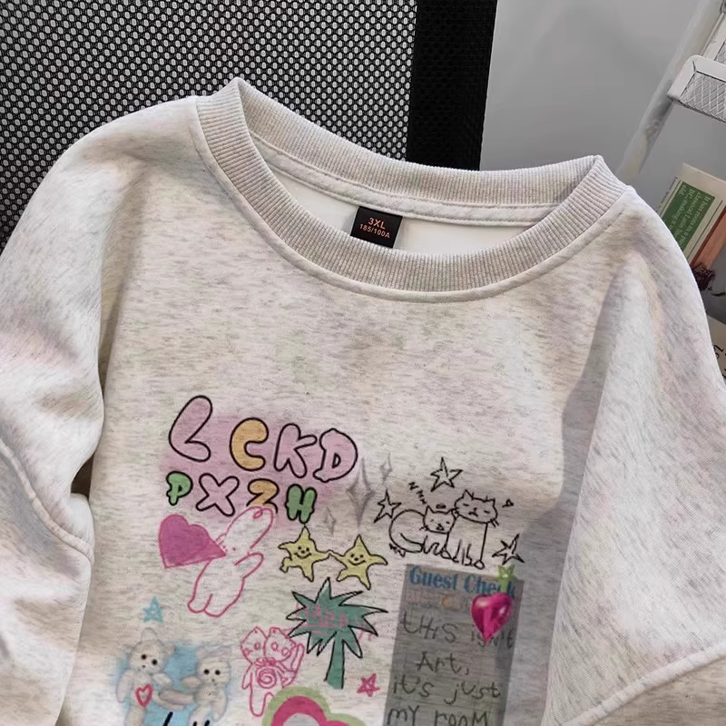 儿童韩版卡通印花圆领卫衣男女童春秋中大童学院风宽松长袖上衣