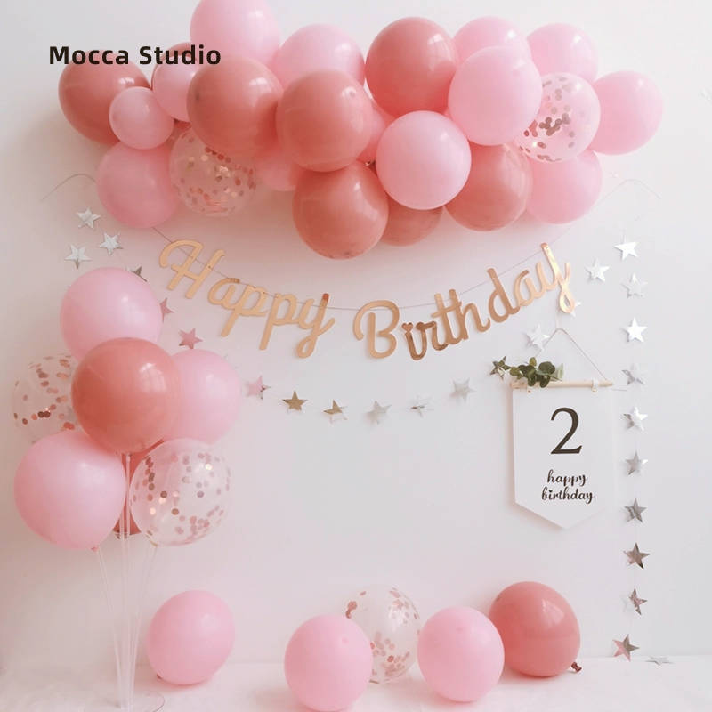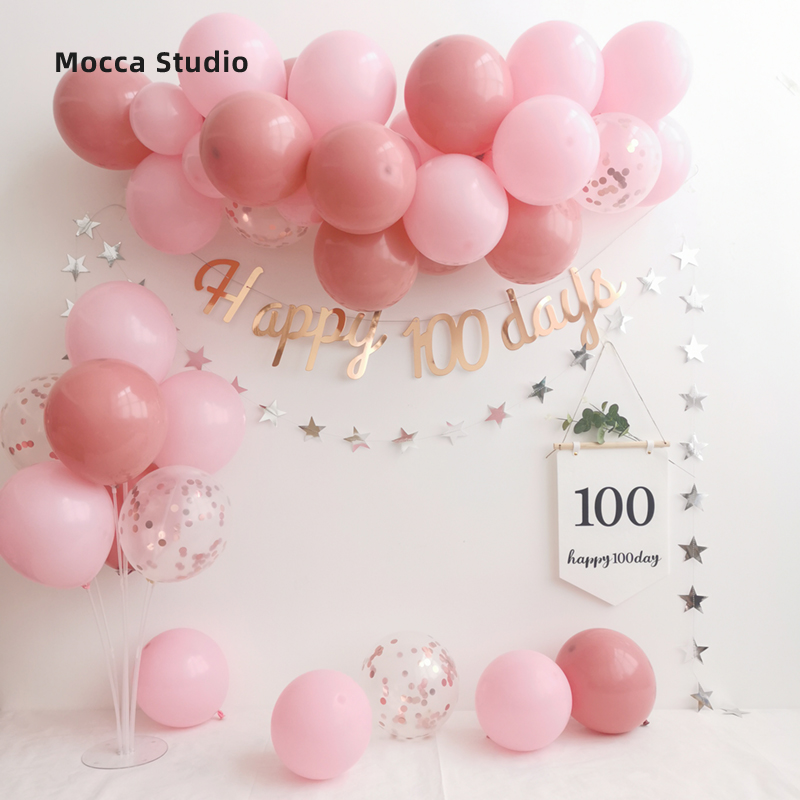 周岁生日布置女宝宝网红复古粉气球公主风女孩派对百天背景墙装饰