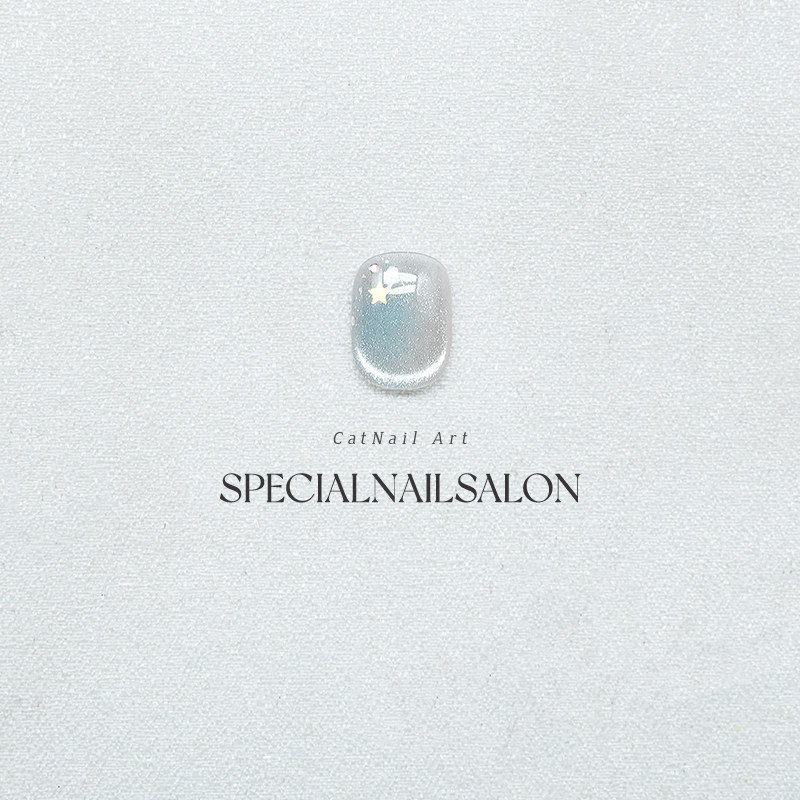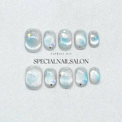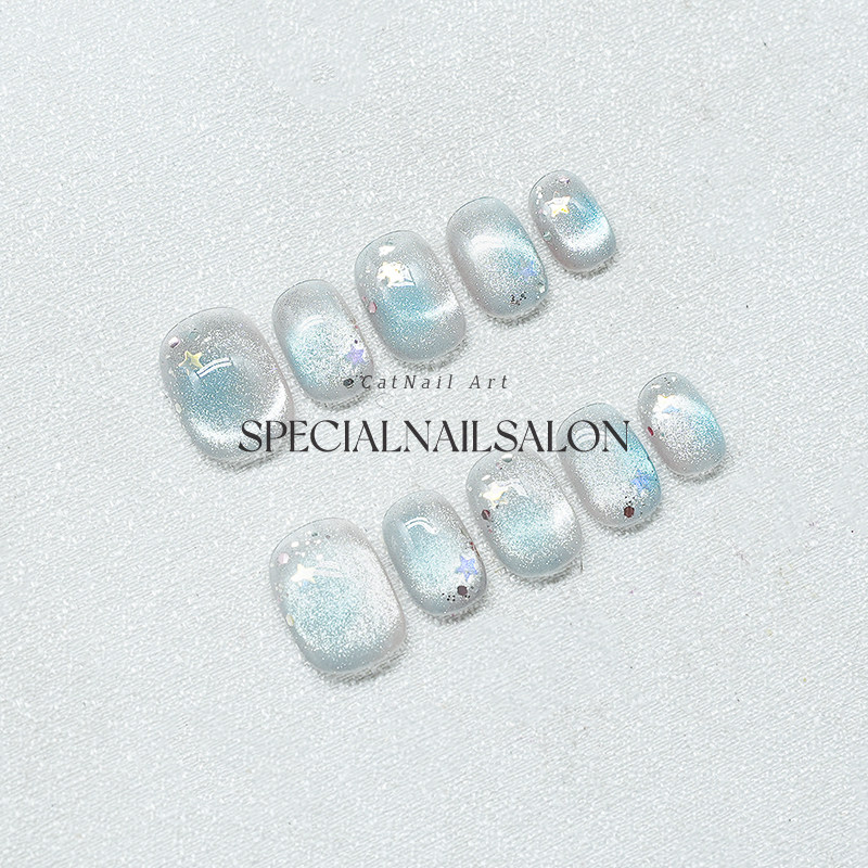 【星海影梦】纯手工穿戴甲晕染细闪冰透蓝星星猫眼高级感显白美甲