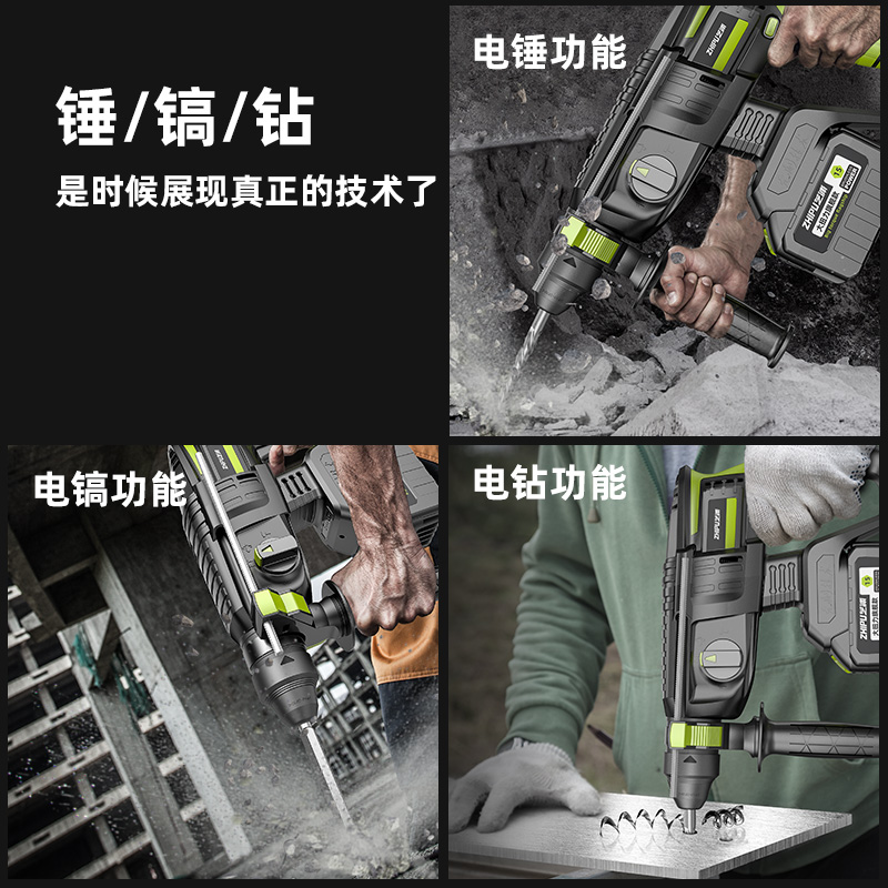 德国芝浦无刷充电电锤锂电池冲击钻电钻镐工业级大功率家用多功能