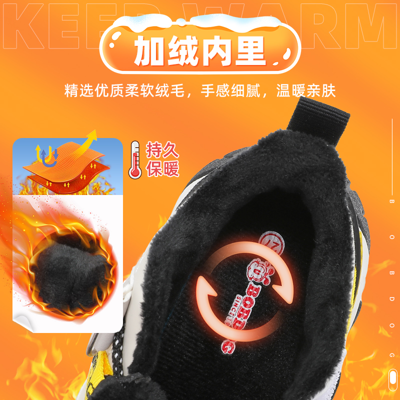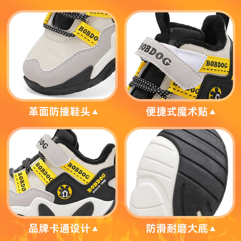 巴布豆童鞋男童运动鞋2022新款秋冬款加绒加厚二棉鞋儿童运动鞋y