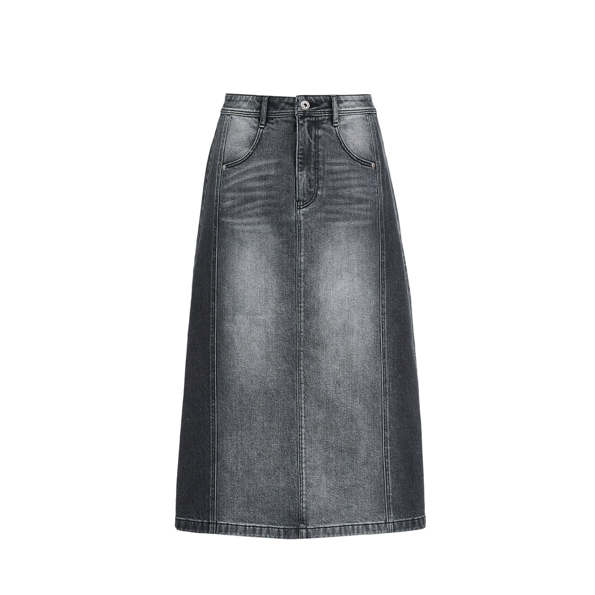 o区绫致ONLY25春夏猫须纹理修容水洗高腰A字中长裙牛仔半身裙女