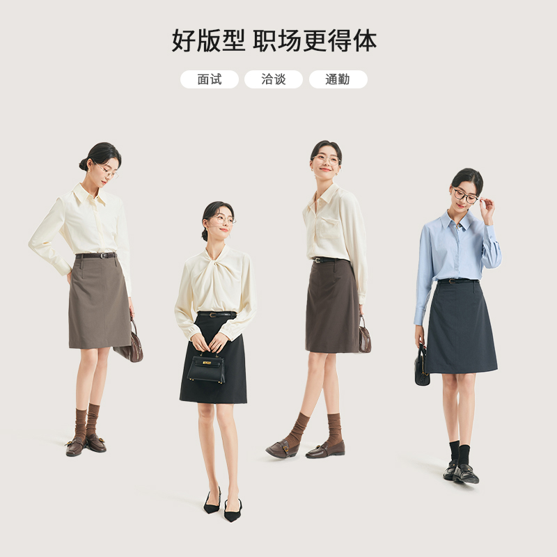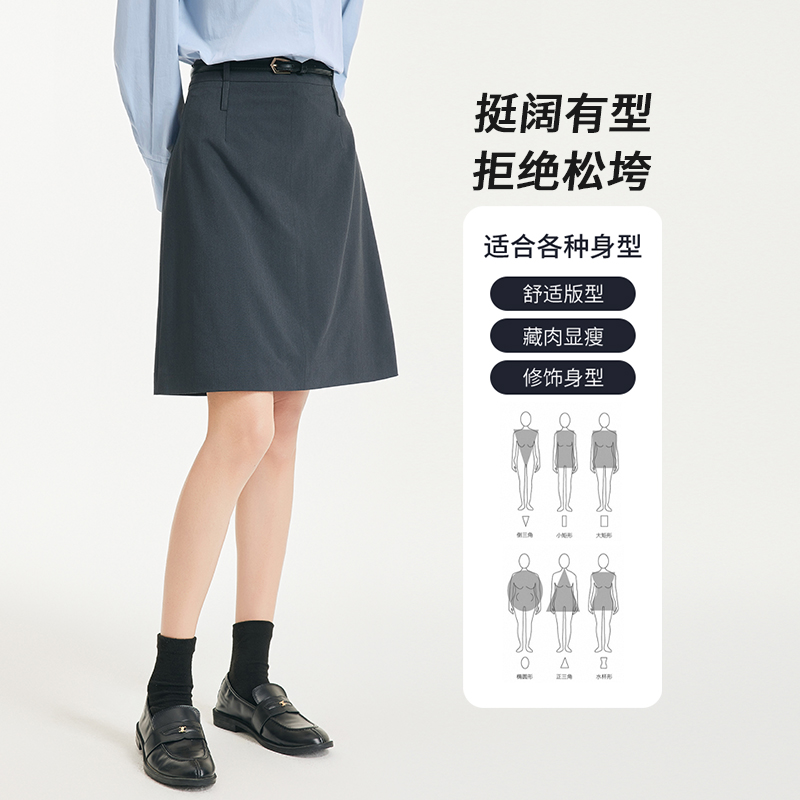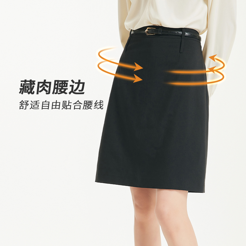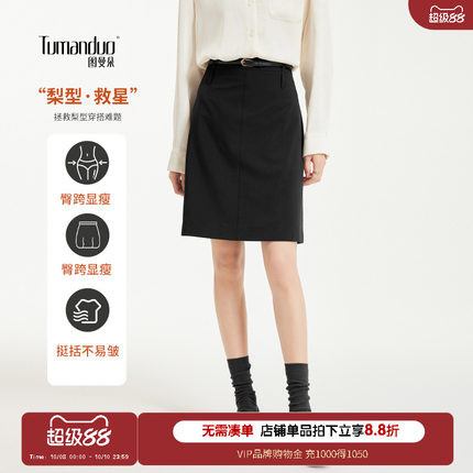 图曼朵黑色半裙职业通勤面试高腰a字西装短裙包臀半身裙直筒中裙