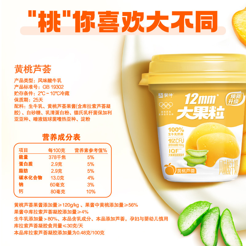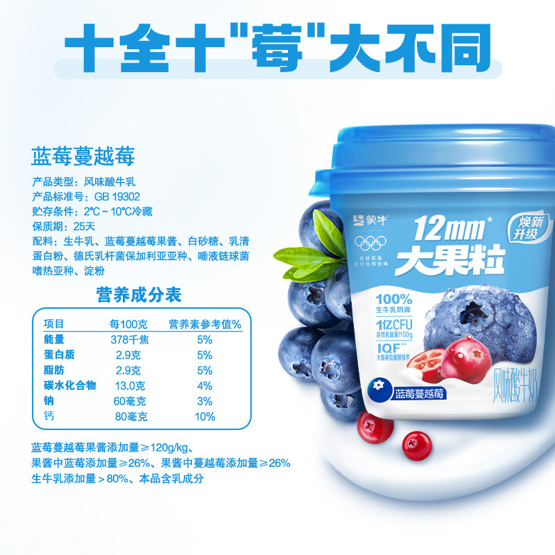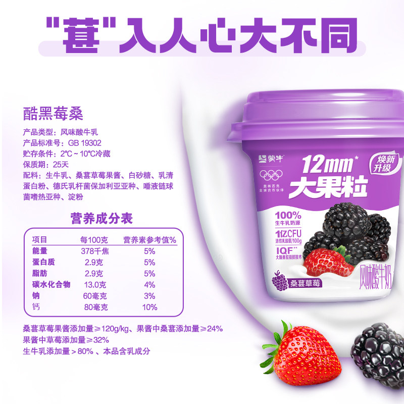 蒙牛大果粒酸奶草莓黄桃蓝莓桑葚多口味风味发酵乳