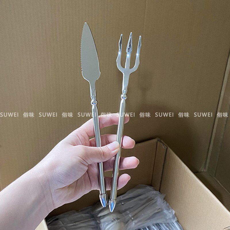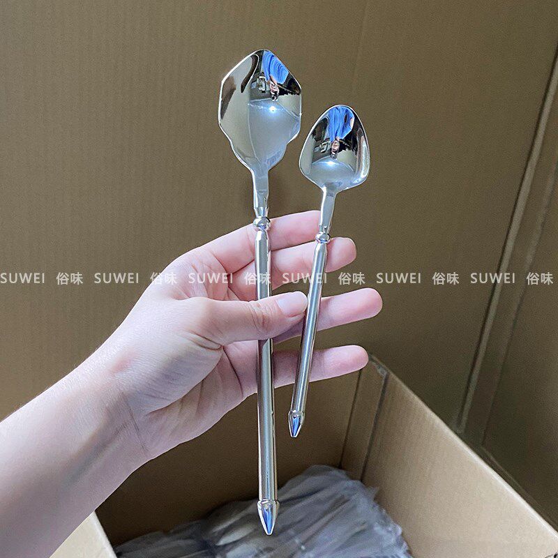 北欧轻奢牛排刀叉勺甜品勺304不锈钢西餐具咖啡勺家用勺子4件套装