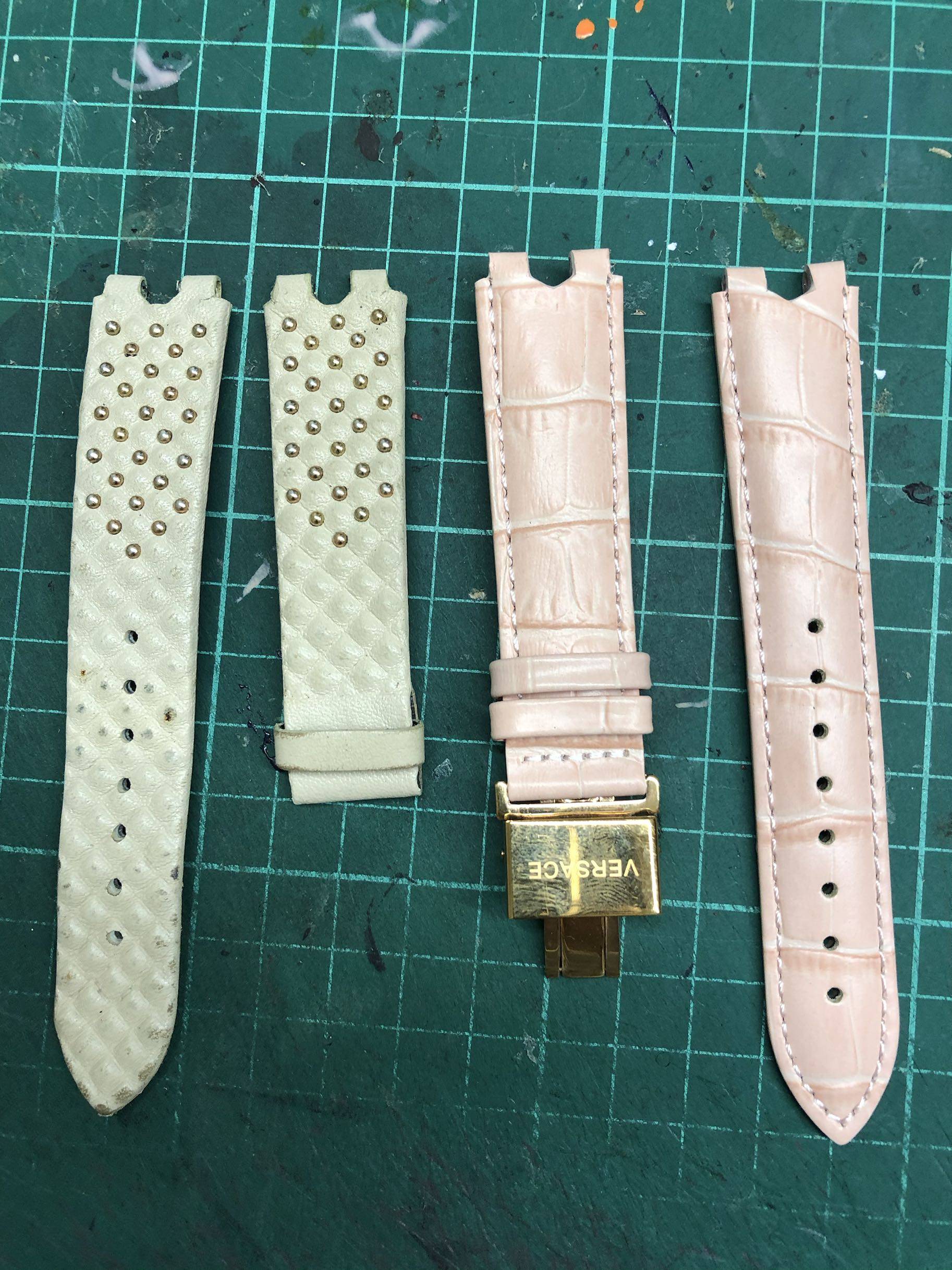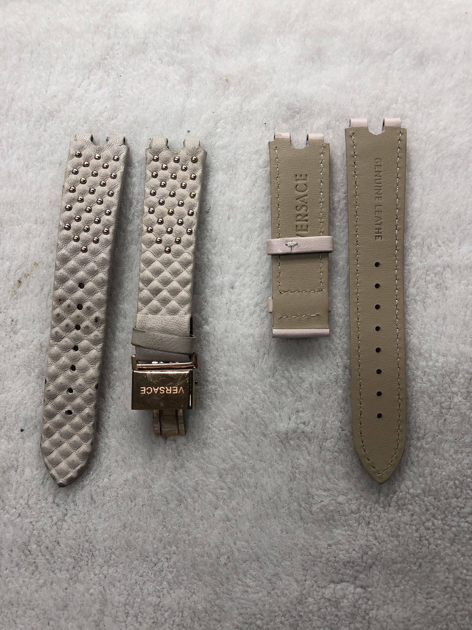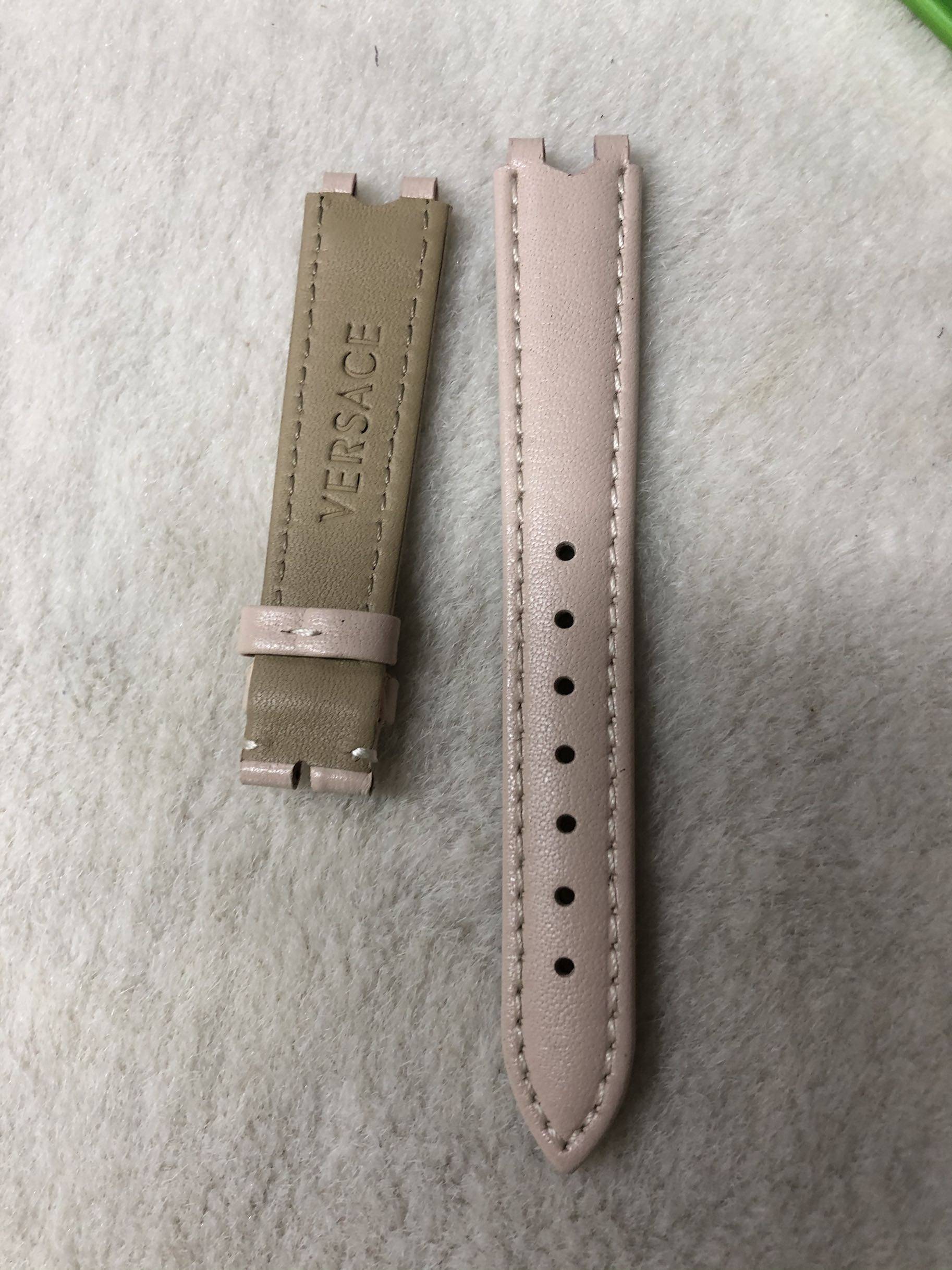 范思哲女表手表女 Versace美杜莎系列真皮米色手表带 蓝色皮表带