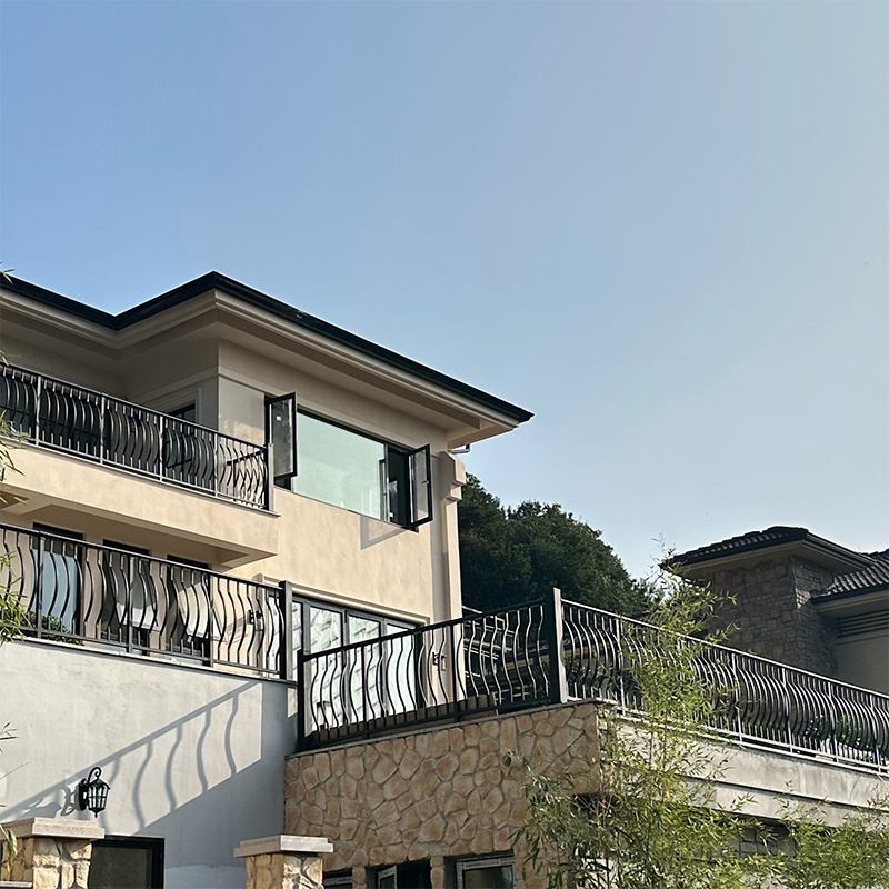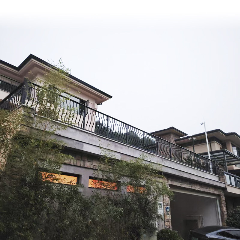 博盾铝合金别墅铁艺弧形室外露台防护栏杆 小区围栏锌钢阳台扶手