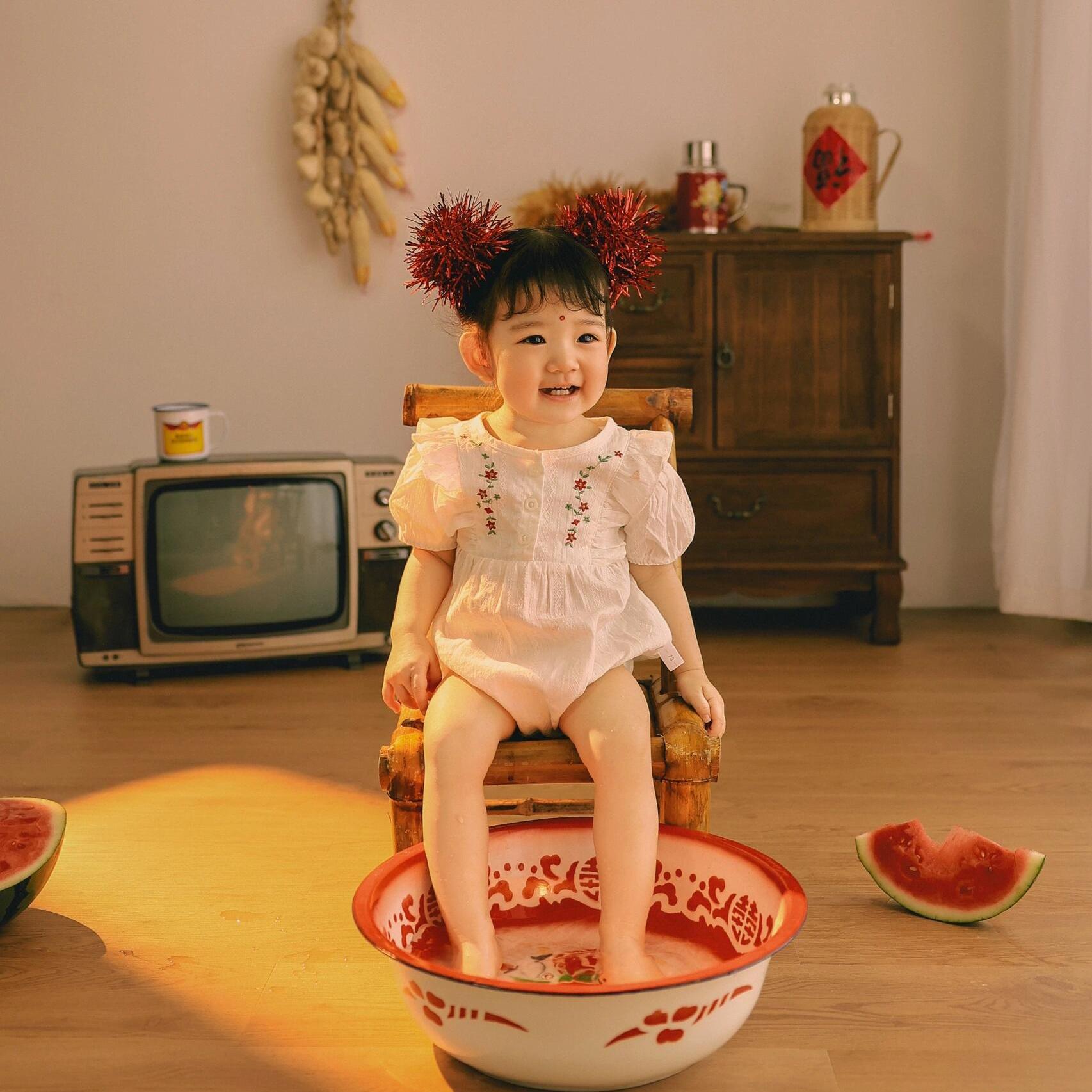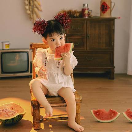 儿童摄影服装2025新年复古百天周岁宝宝80年代小时候主题服装道具