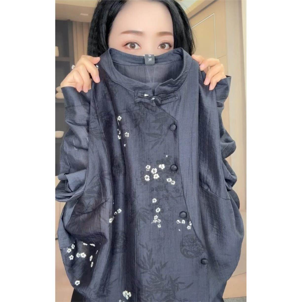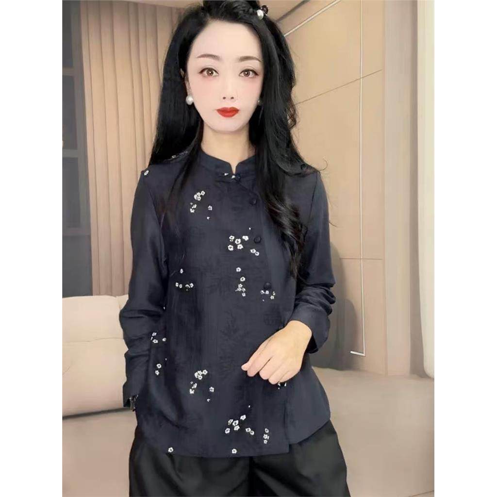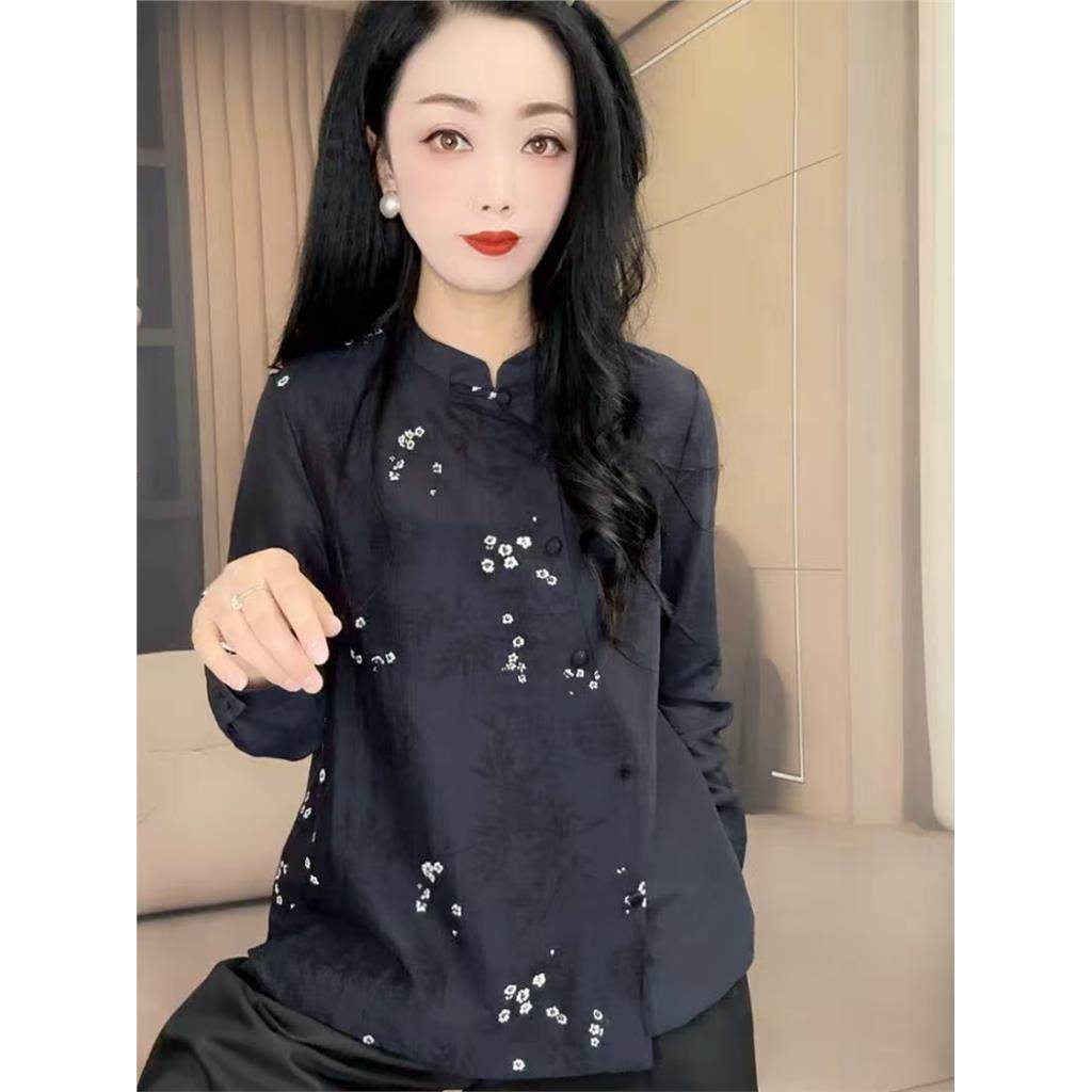 2026春季新款新中式国风衬衣百搭洋气设计感拼色宽松衬衫女人味潮