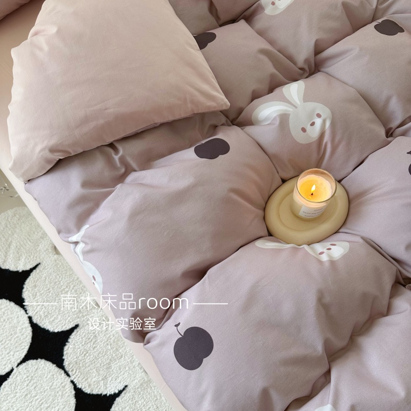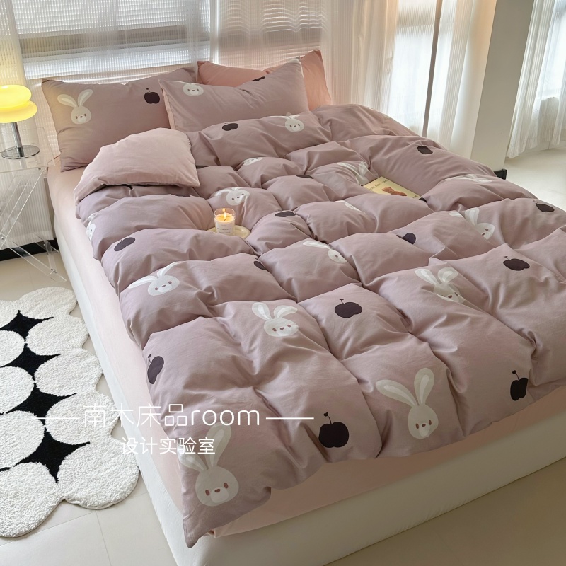 苹果兔|脏脏粉卡通印花加厚全棉磨毛四件套1.8m纯棉秋冬儿童床品
