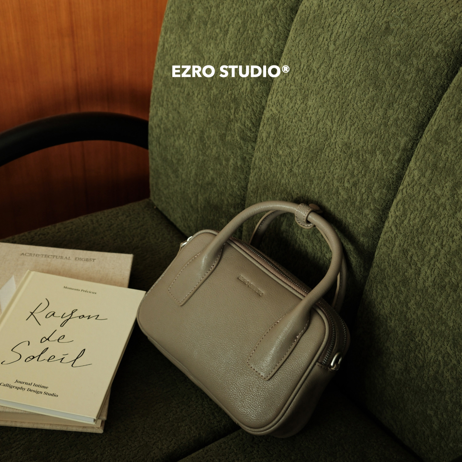 EZRO植鞣牛皮手提单肩斜挎小方包