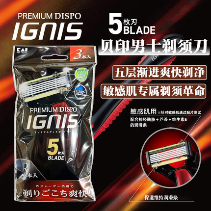 日本进口KAI贝印男士敏感肌用手动刮胡刀5层刃剃须刀本体3个装
