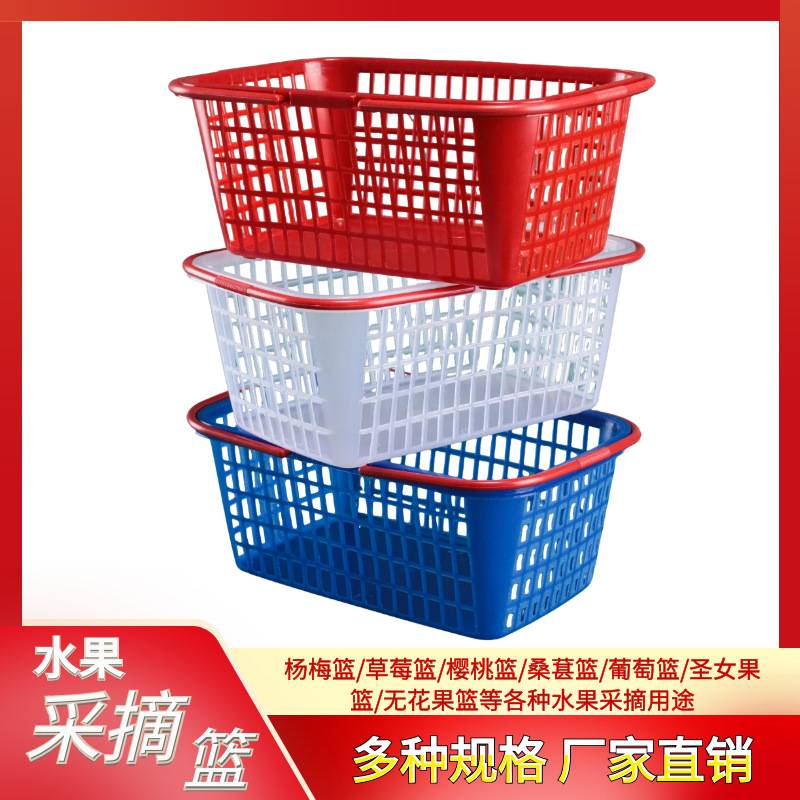 水果篮子采摘筐草莓篮子红色方形塑料手提水果篮带盖杨梅篮1-12斤