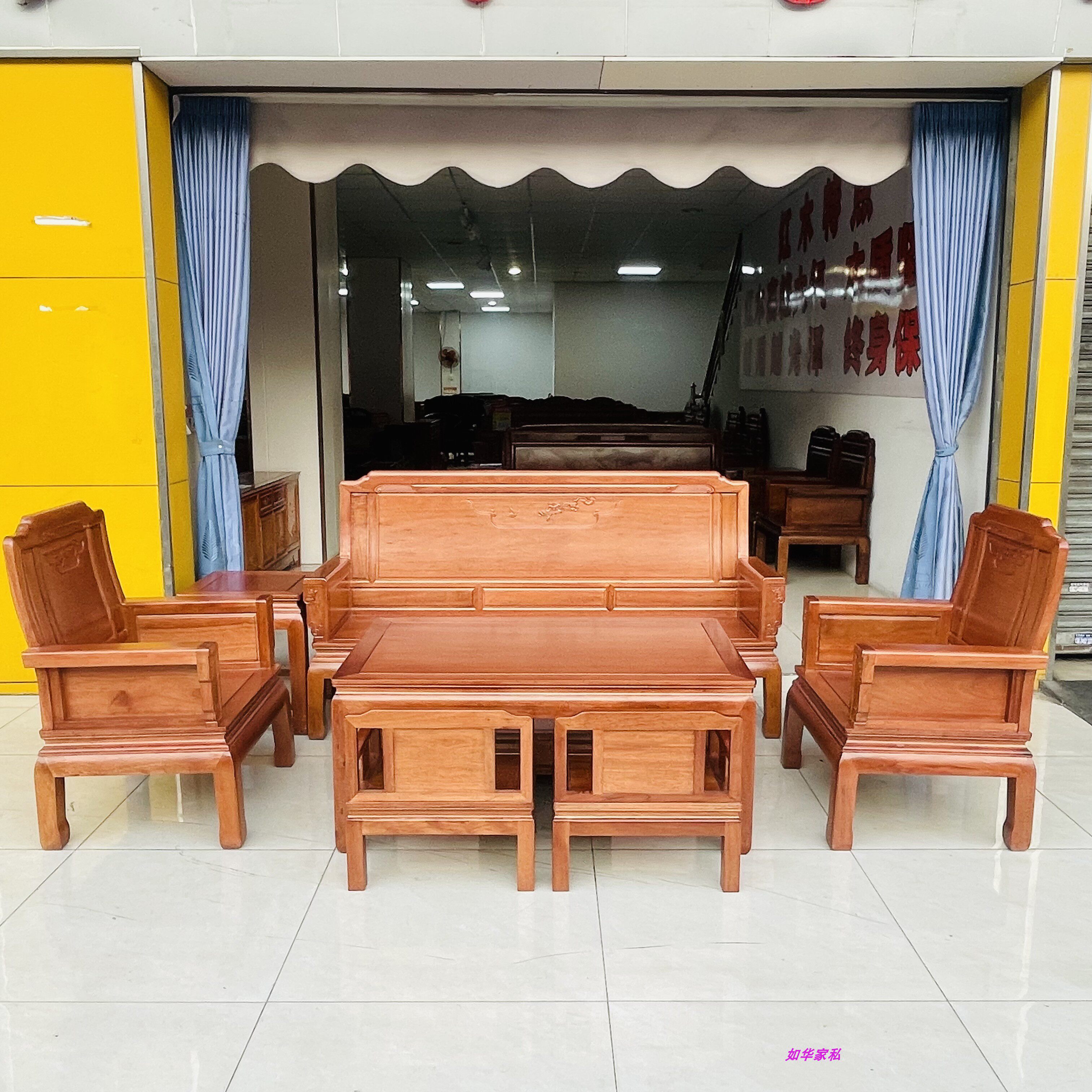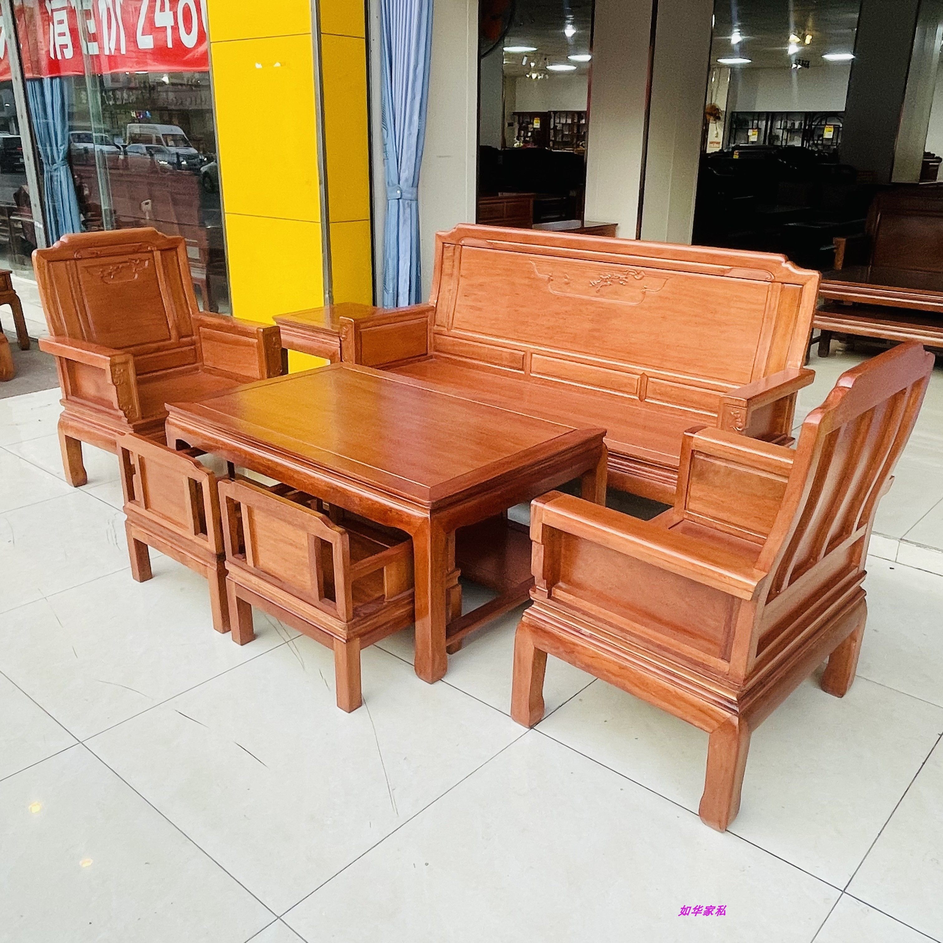 红木菠萝格木沙发全实木花梨木原木沙发配椅椅新中式客厅家具富丽