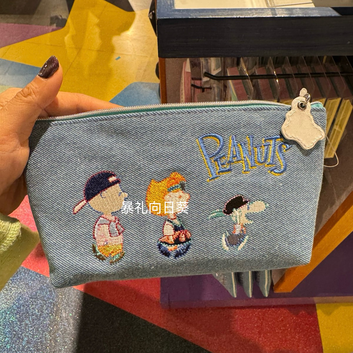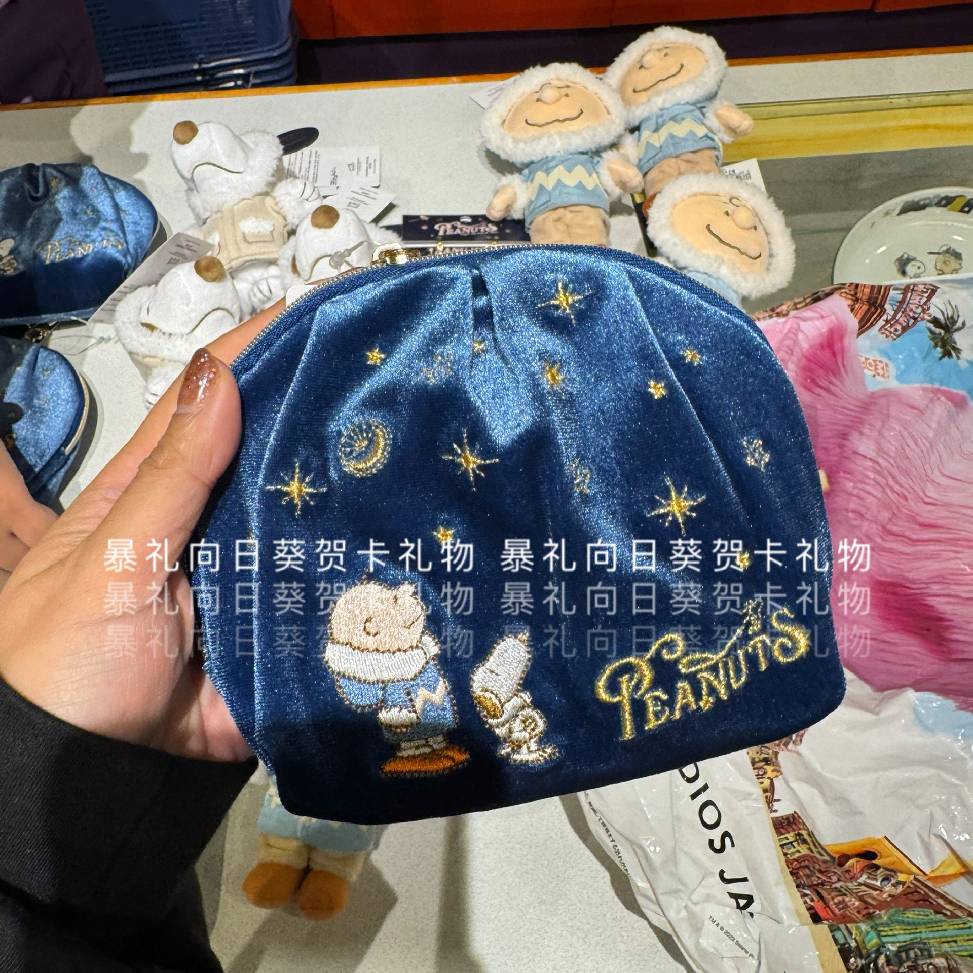 日本大阪usj史努比限定收纳包丝绒刺绣查理布朗手提包情人节礼物