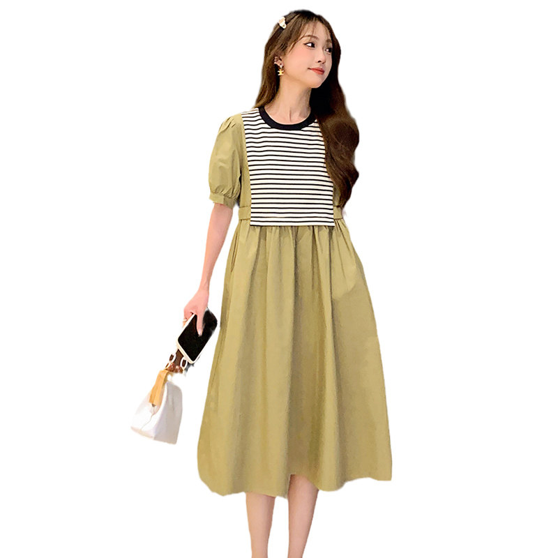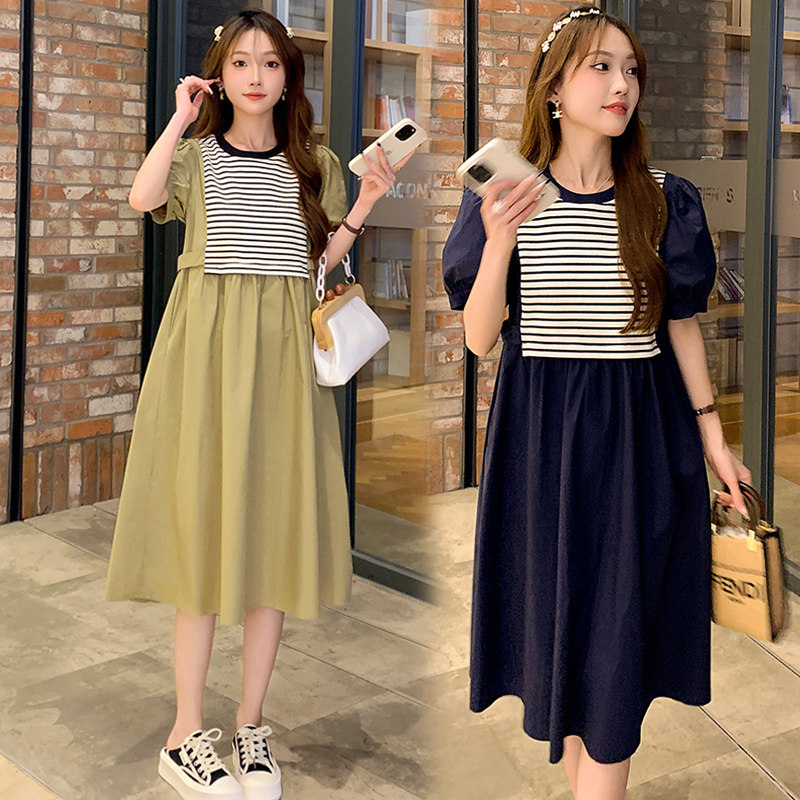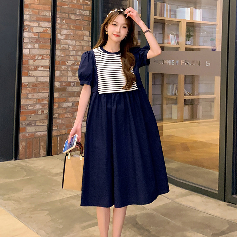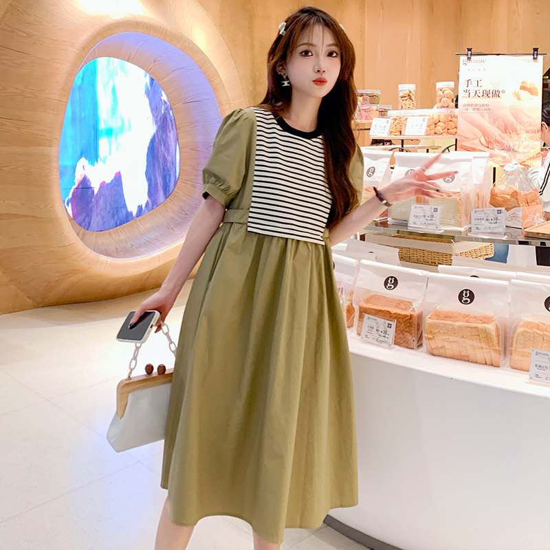 孕妇装夏天裙子时尚宽松中长款假两件圆领孕妇裙外穿洋气连衣裙女