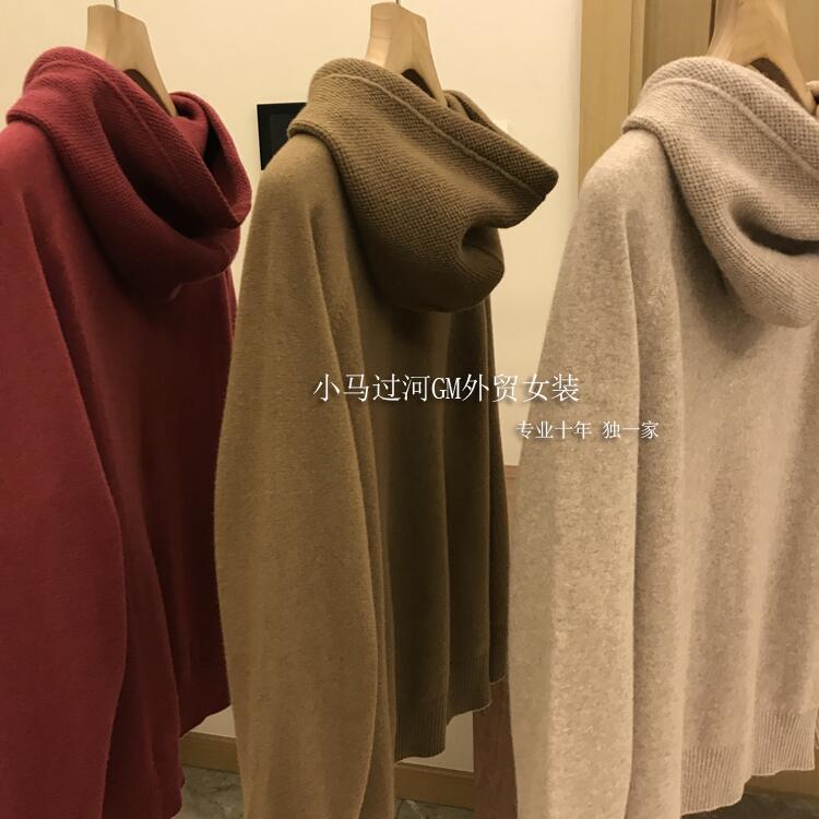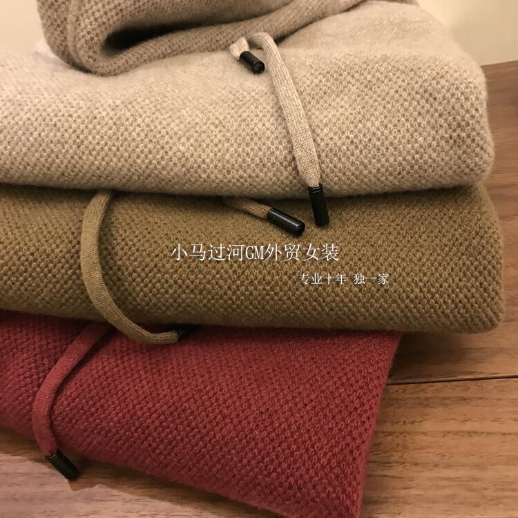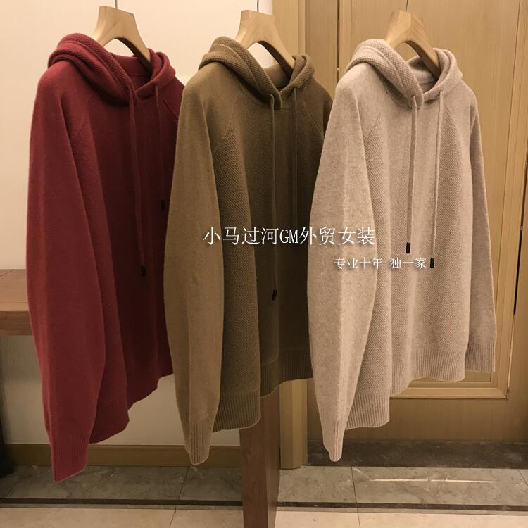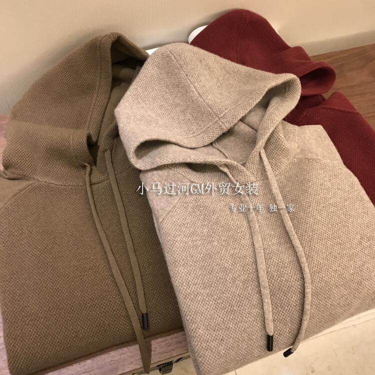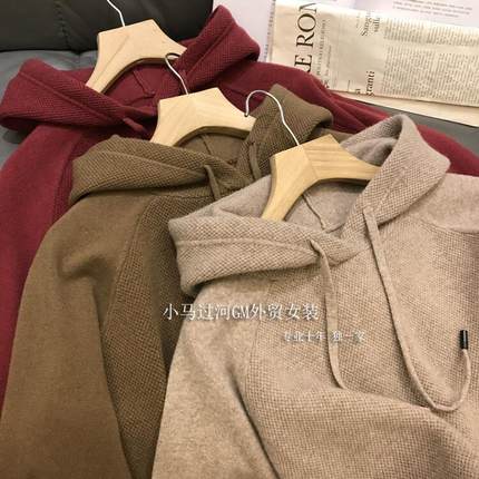 工厂返单~轻奢口碑线!100羊毛针织宽松外穿连帽衫加厚毛衣女秋冬