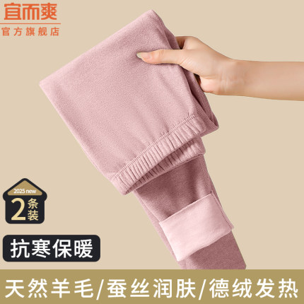 德绒保暖裤秋裤女羊毛蚕丝高腰无痕自发热羊绒裤内穿打底裤加绒冬
