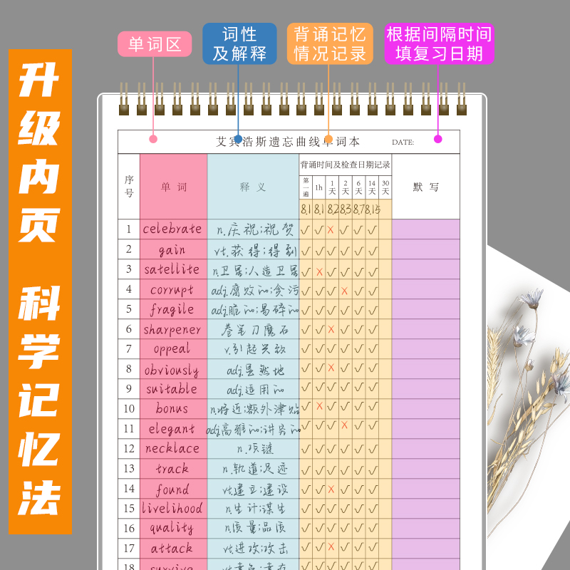 英语单词记背神器艾宾浩斯记忆曲线本四六级考研初高中生被单词笔记本子日语韩语默写纸背单词记单词线圈本