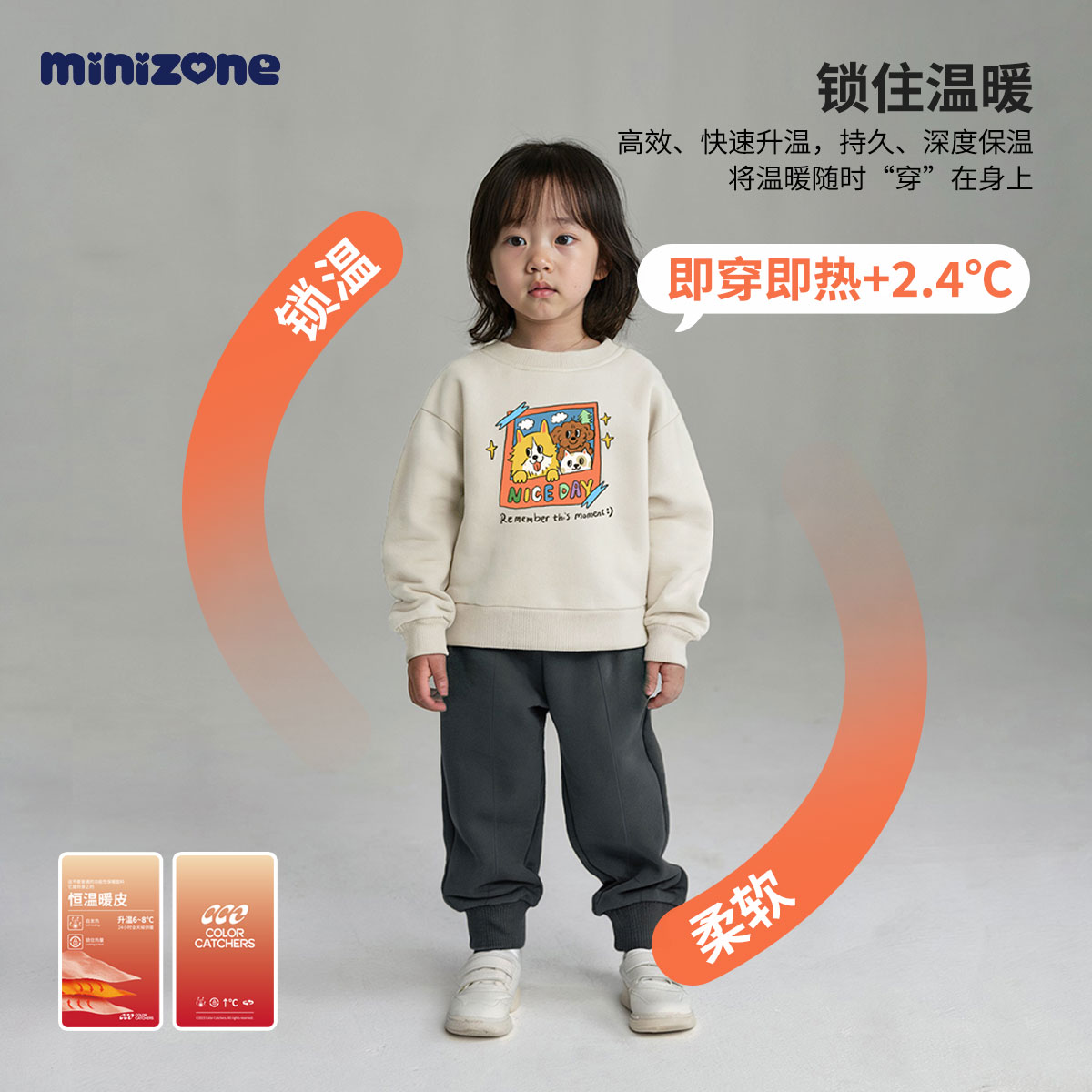 minizone儿童卫衣裤秋冬中小童保暖两件套男女童运动套装加绒加厚