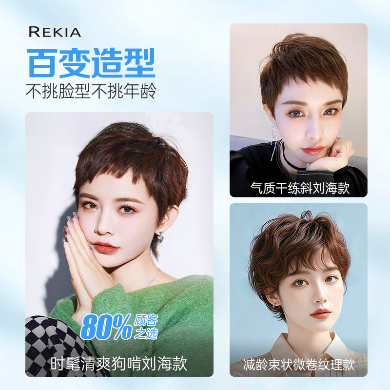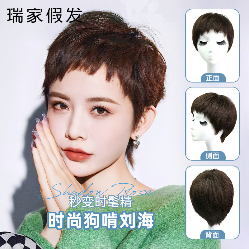 瑞家假发狗啃刘海假发女夏天薄款短发全头套全真发二次元真人发套