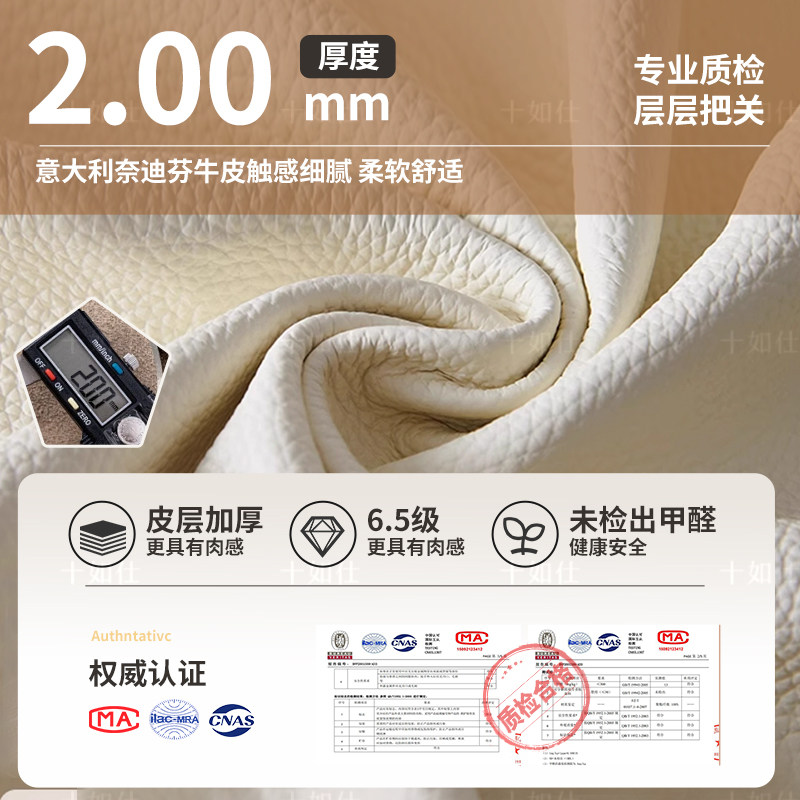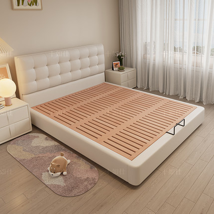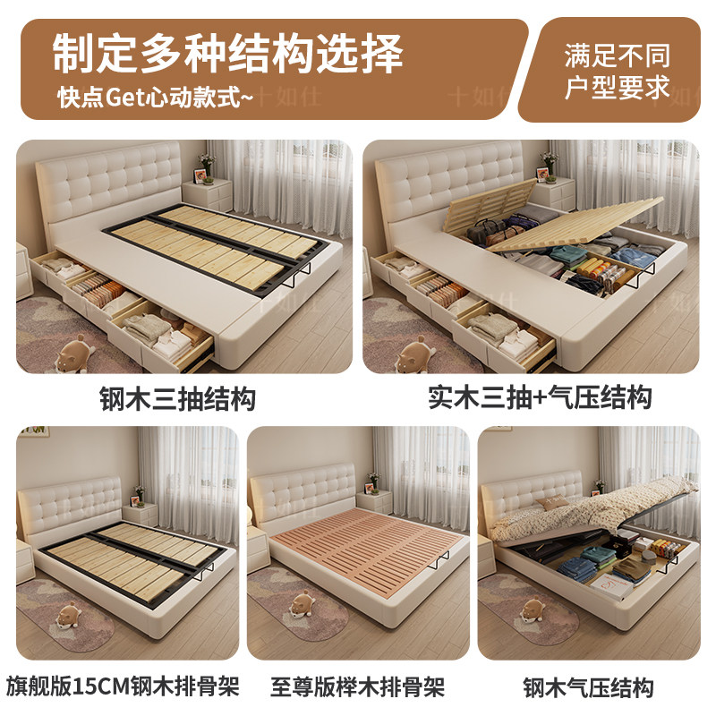 金可儿意式极简奶油风真皮床 现代简约软包双人床 华夫格设计储物