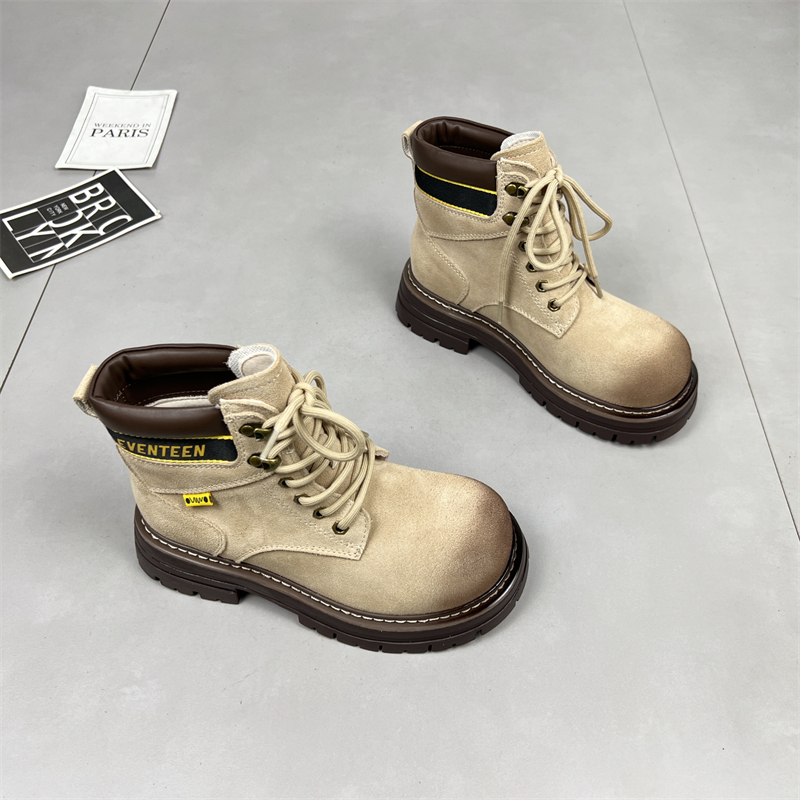 真皮厚底马丁靴女ins潮2025秋季新款韩版英伦风增高运动休闲短靴