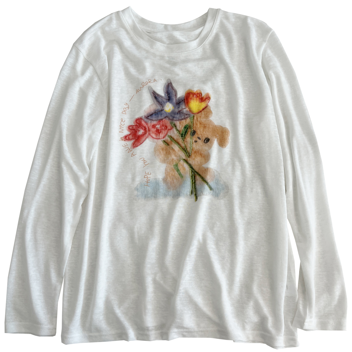 半透视薄款印花圆领长袖T恤女夏