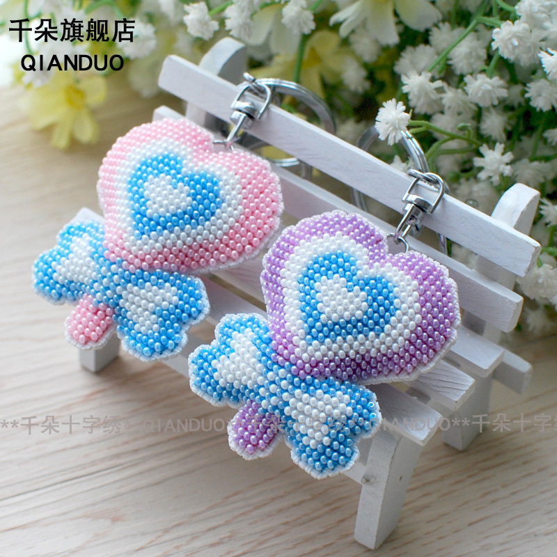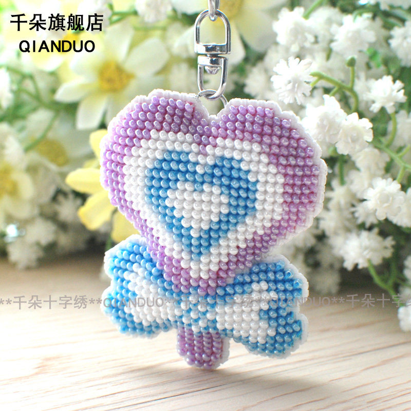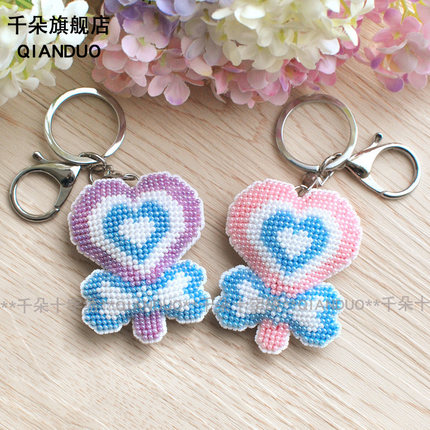 千朵印花十字绣珠绣钥匙扣DIY材料包LOVE棒棒糖手机防尘塞小挂件