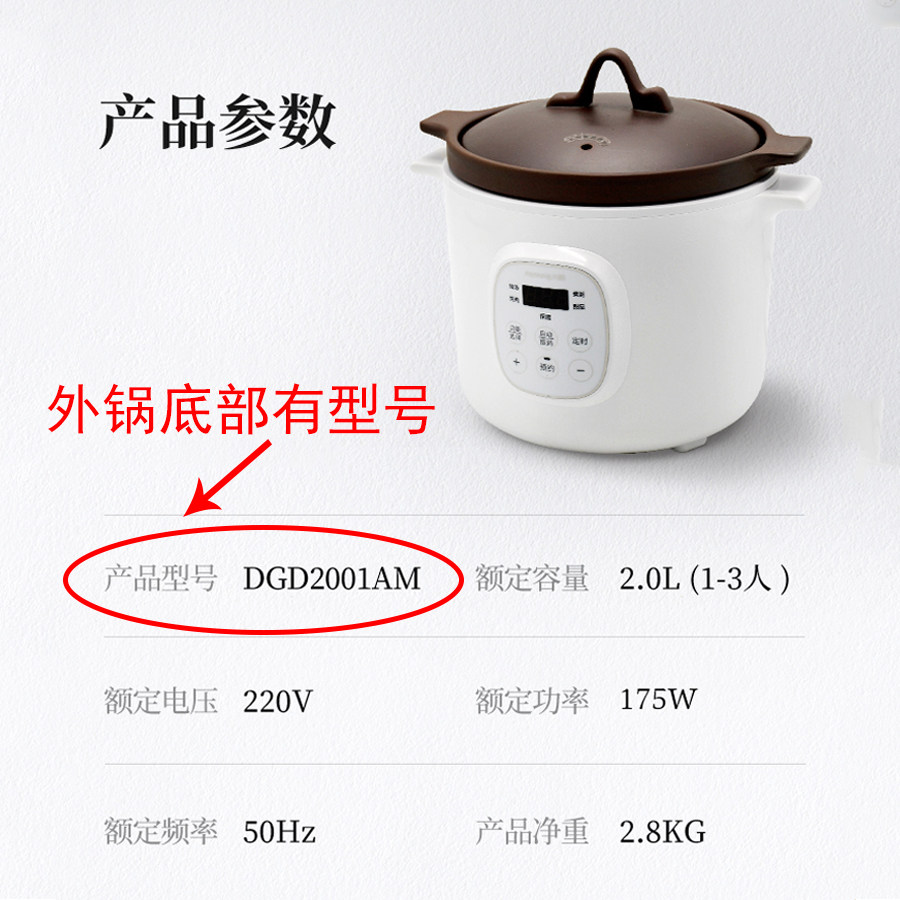 适用九阳电炖紫砂锅煲DGD2001AM内胆盖子紫砂锅电炖锅内胆盖2L升