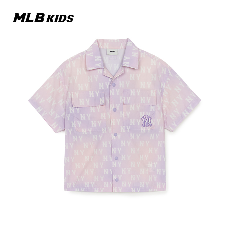 MLB儿童官方男女童摩登时髦刺绣LOGO渐变老花梭织衬衫25春夏新款