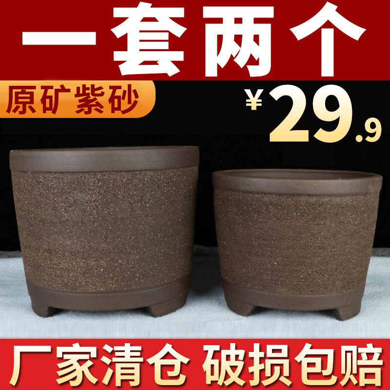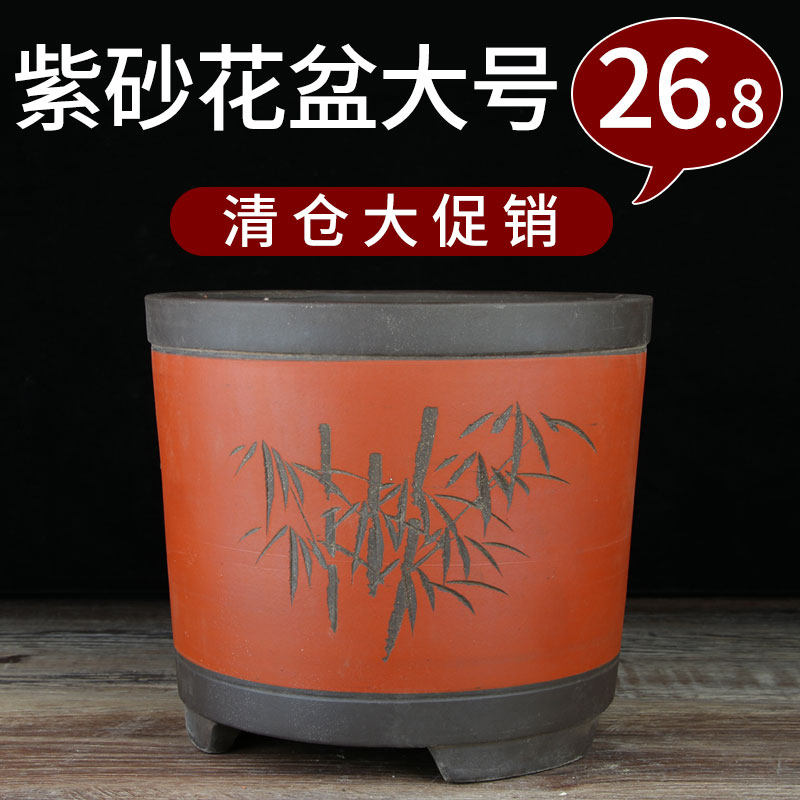 宜兴紫砂特大口径圆柱君子兰小吊兰阳台绿萝多肉特价清仓陶瓷盆景