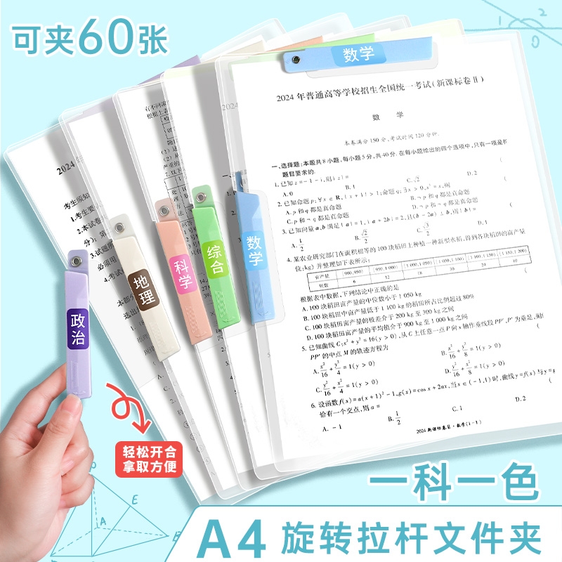 a3旋转试卷夹双拉杆夹a4文件夹小学生专用初高中生透明插页试卷整理夹资料收纳袋大容量分类卷子收纳整理神器