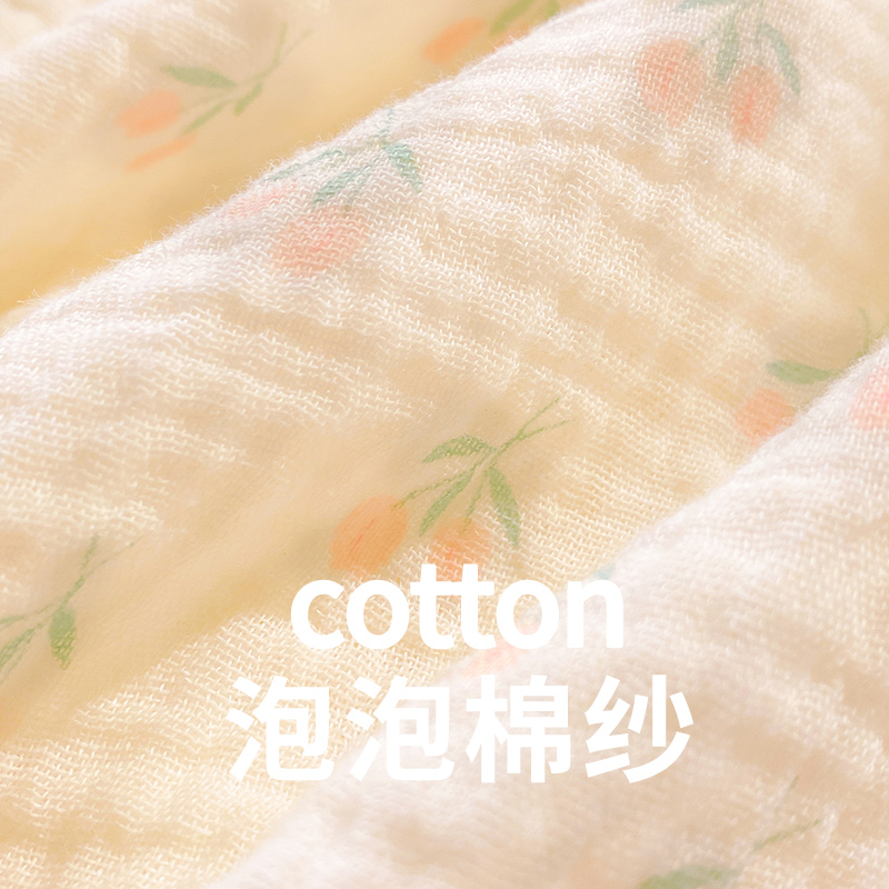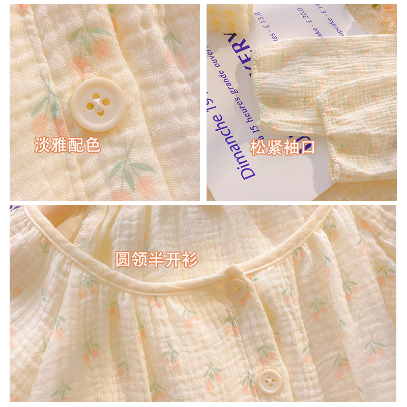 樱桃小碎花女士纯棉纱布圆领睡衣