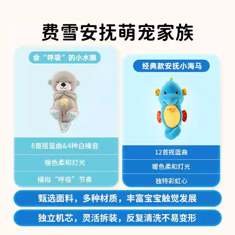 【自营】费雪小水獭新生儿安抚哄睡毛绒玩偶宝宝声光玩具毛绒礼物