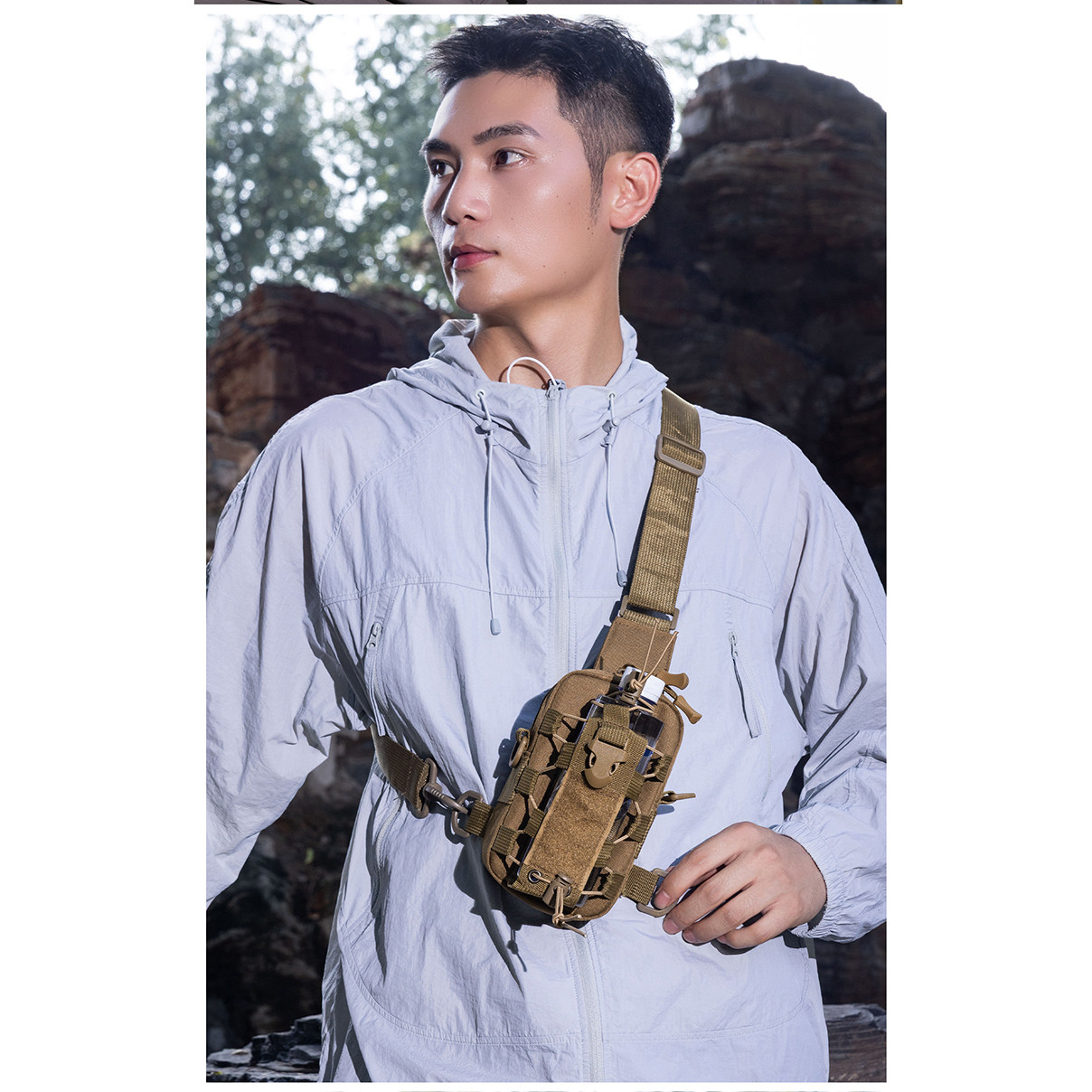 户外战术胸包男士多功能水壶包单肩包斜挎包登山骑行包旅行手机包
