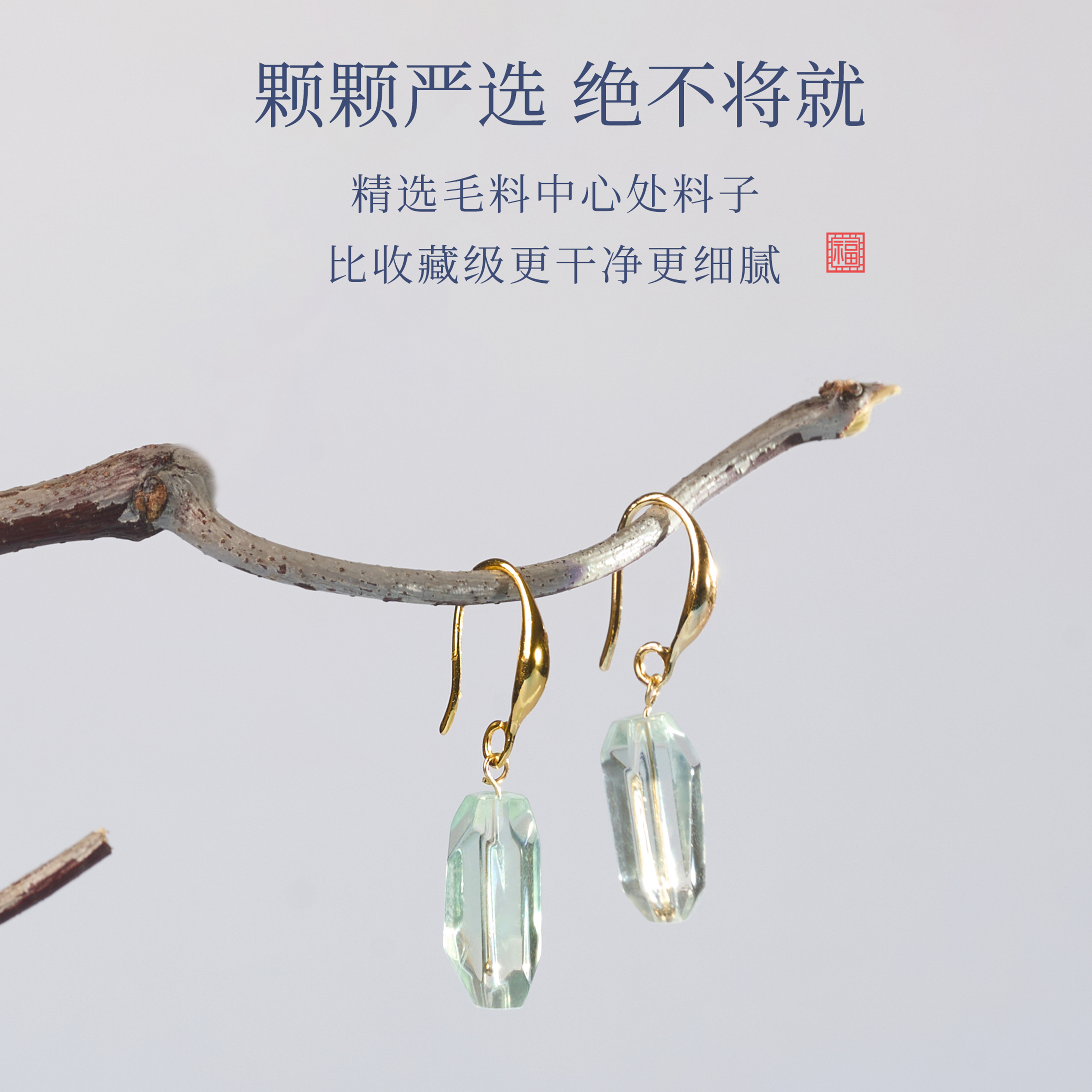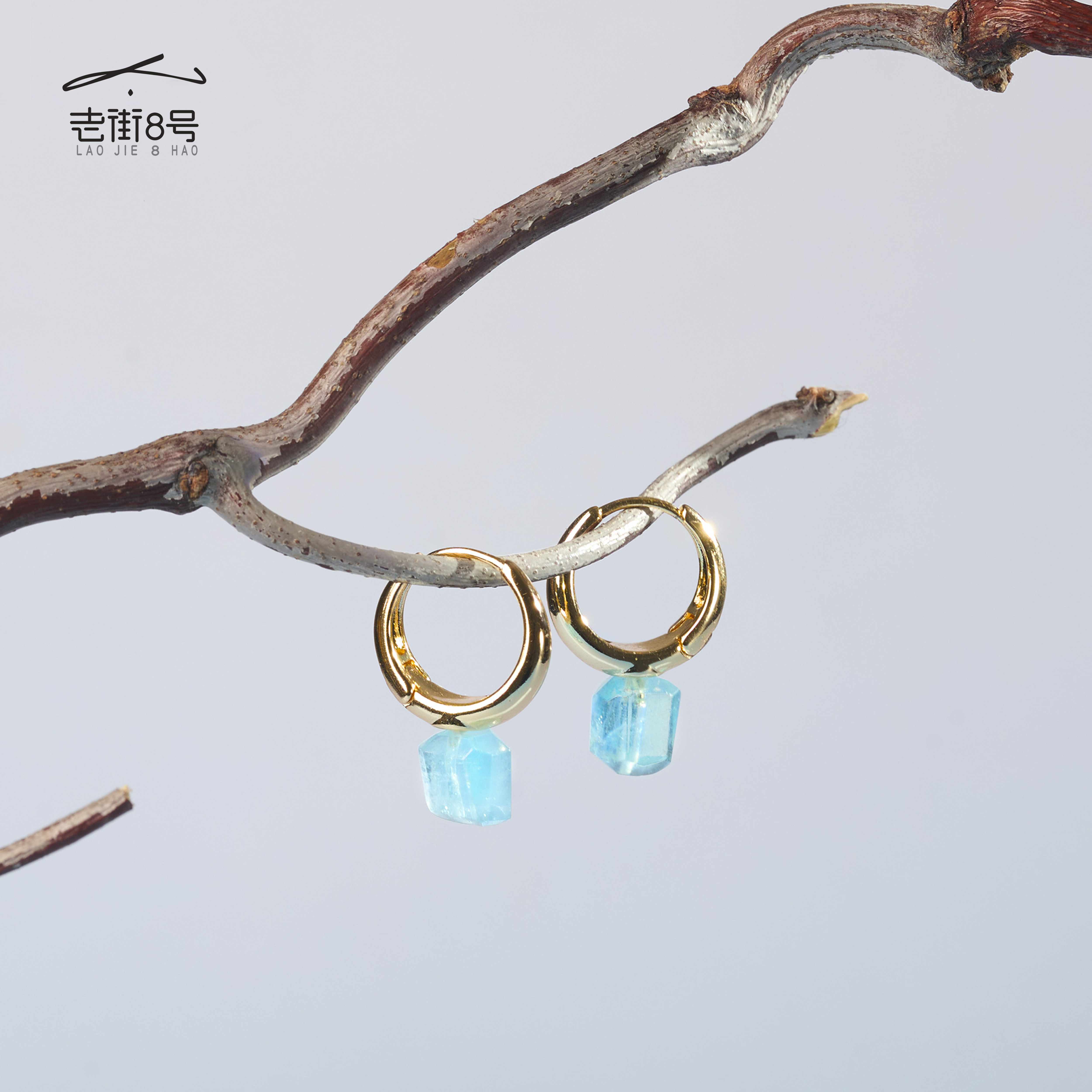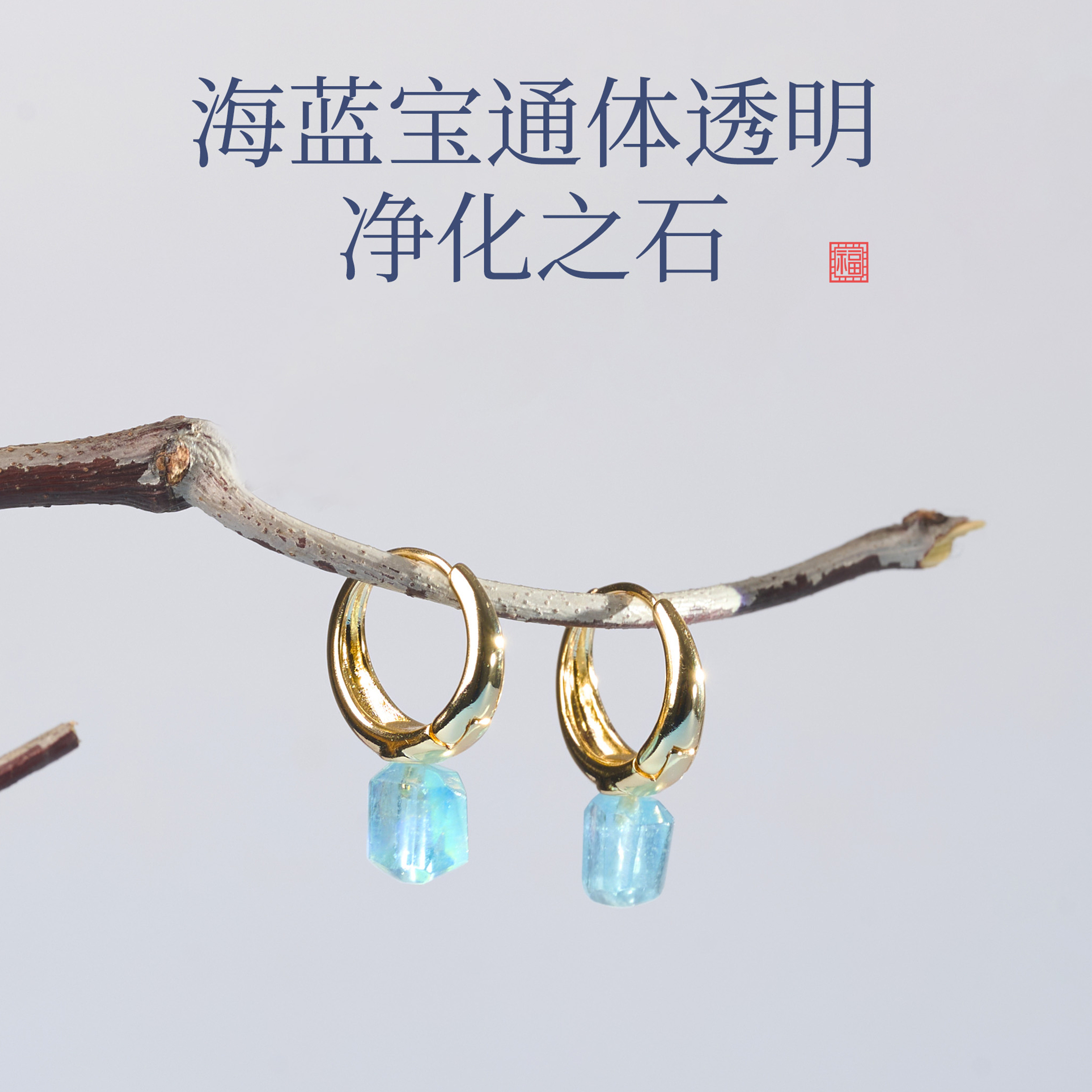 天然海蓝宝耳钉女款耳环耳饰情绪稳定水晶送女友闺蜜生日礼物