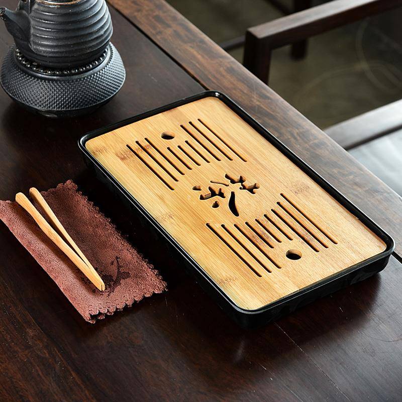 密胺简约家用实用茶盘茶托迷你小型沥水实木茶台竹制木制茶具配件