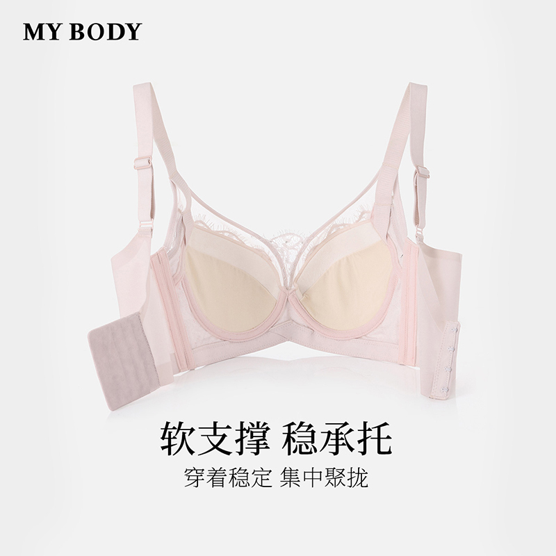 商场同款MYBODY新款蕾丝内衣女全罩杯记忆钢圈防下垂聚拢性感文胸