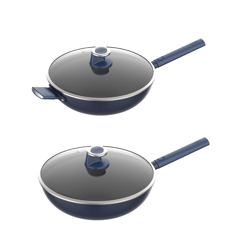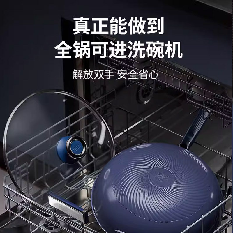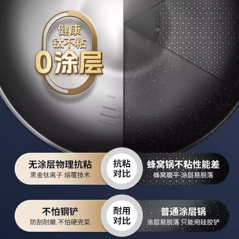 炒锅不粘锅家用爱仕达钛晶无涂层多功能圆底炒菜锅带盖钛锅厂