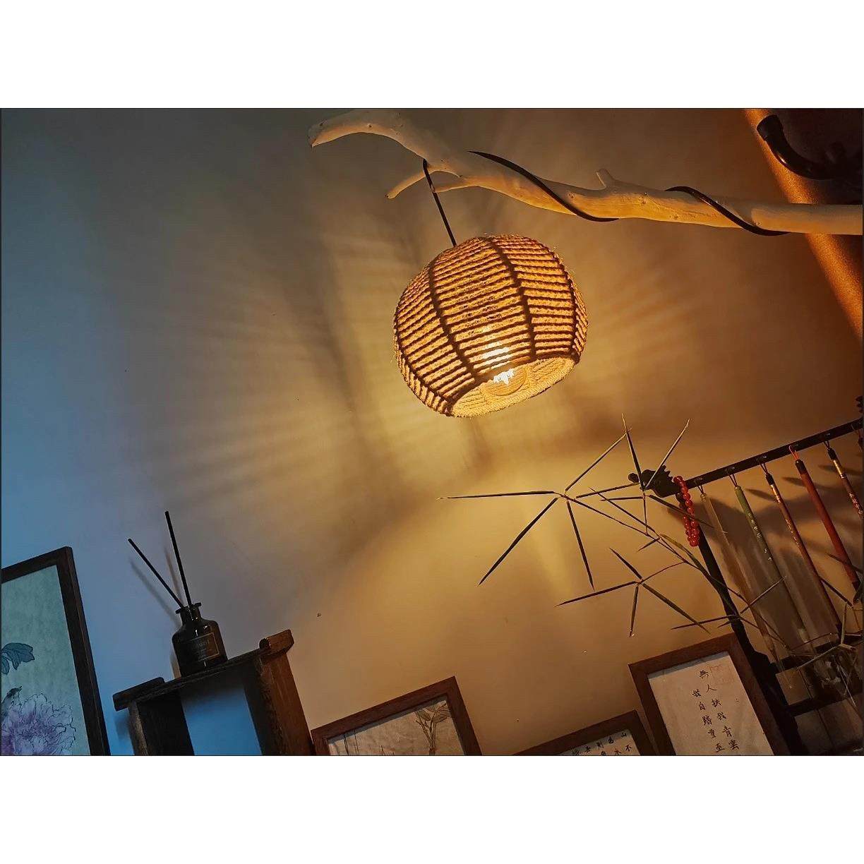 麻绳灯吊灯中式乡村农家乐火锅店农家院田园创意个性三头餐厅吊灯