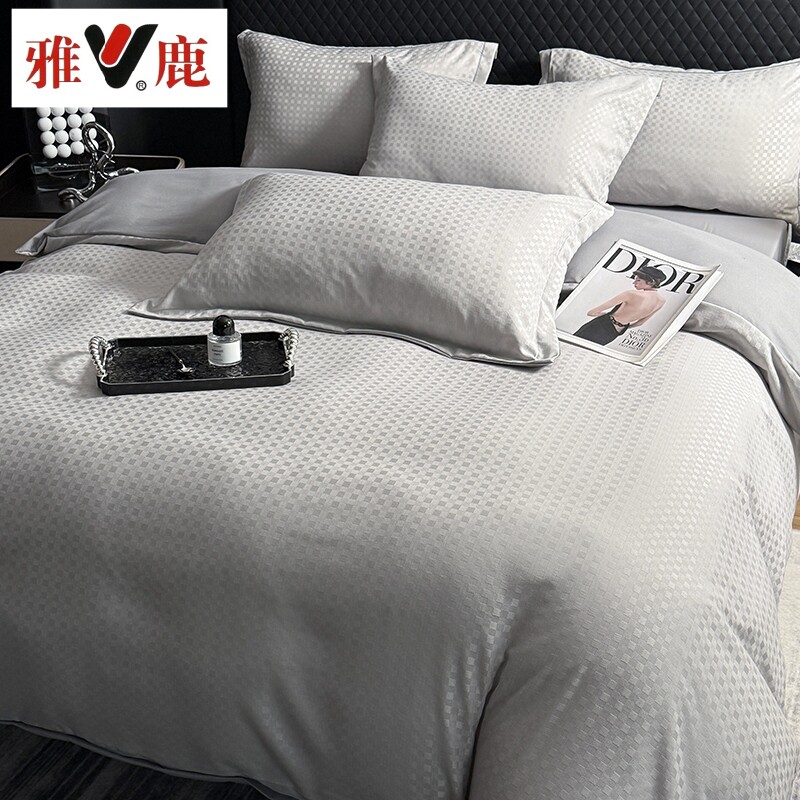 雅鹿金丝银线新款高奢宋锦缎大提花四件套双人床上用品
