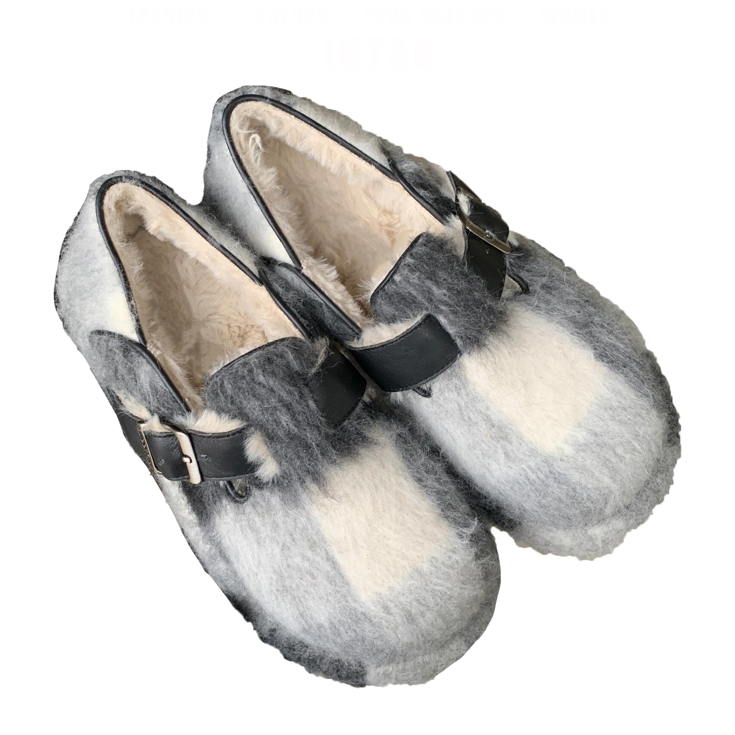 绝美拼色勃肯鞋全包女冬加绒2025新款厚底一脚蹬保暖深口豆豆单鞋