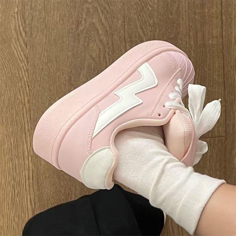 国潮小众多巴胺滑板鞋 厚底圆头二层牛皮鞋 女款百搭休闲板鞋 学