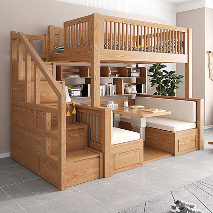 上下铺双层高低床姐弟床S型儿童互不打扰书桌组合一体实木子母床