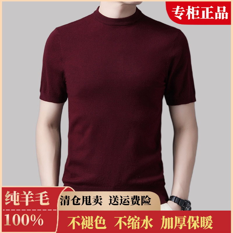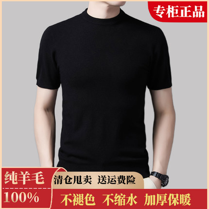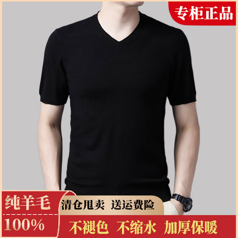 鄂尔多斯市100%纯羊毛男休闲圆领时尚百搭短袖保暖毛衣打底针织衫