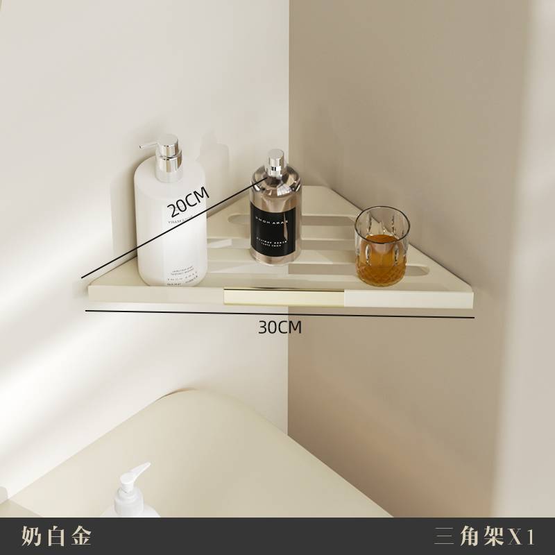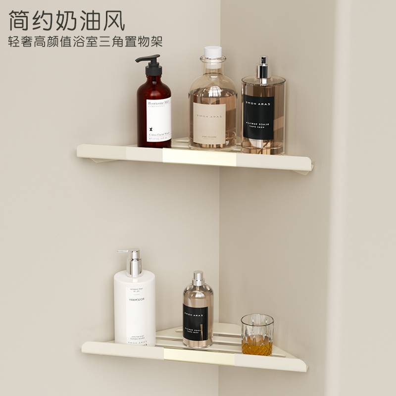 ?浴室置物架角架双层免打孔壁挂单层奶油风卫生间转角不锈钢三角