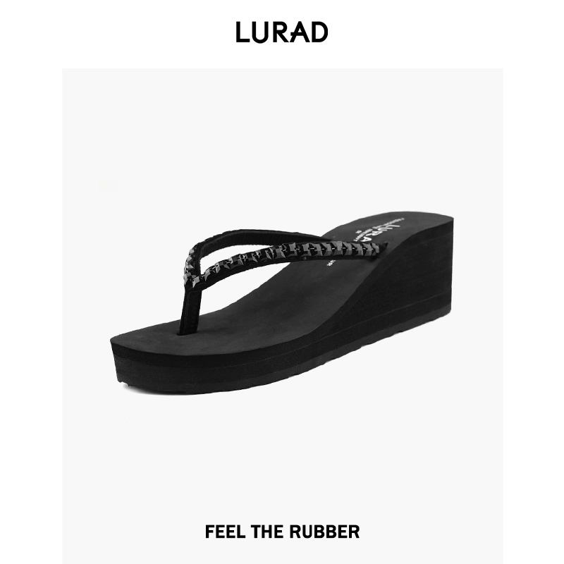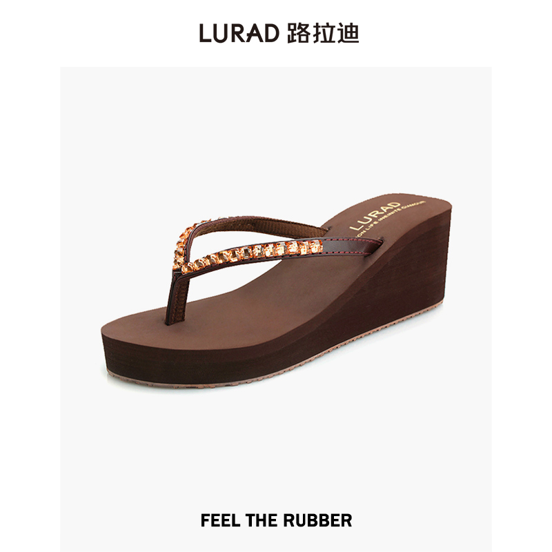 路拉迪高跟水砖人字拖鞋 夏季女士防滑沙滩凉拖厚底坡跟时尚夹拖