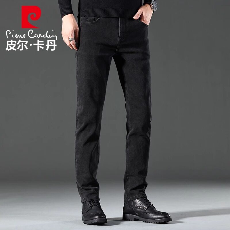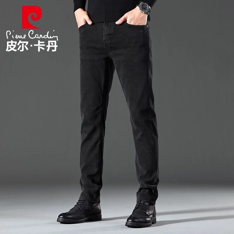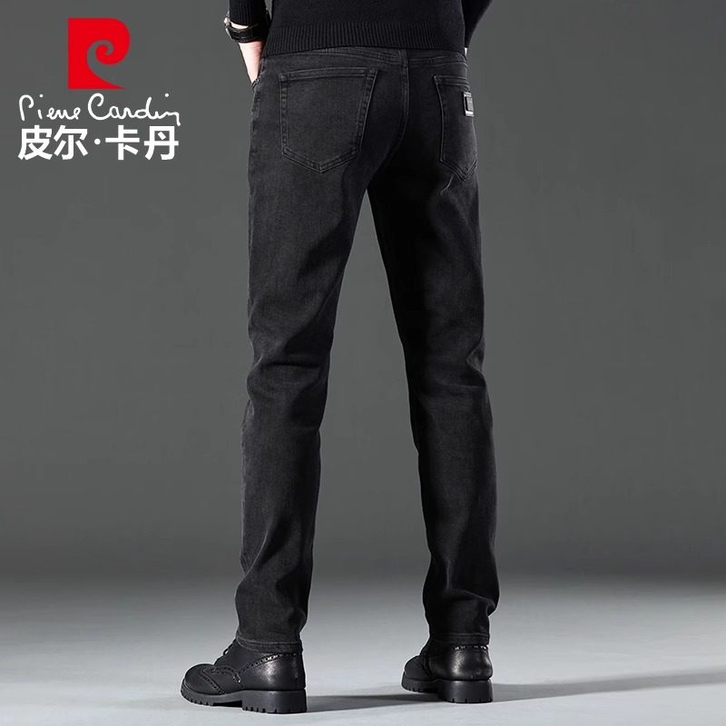 皮尔卡丹品牌2025秋冬新款牛仔裤男宽松直筒商务休闲加绒加厚裤子